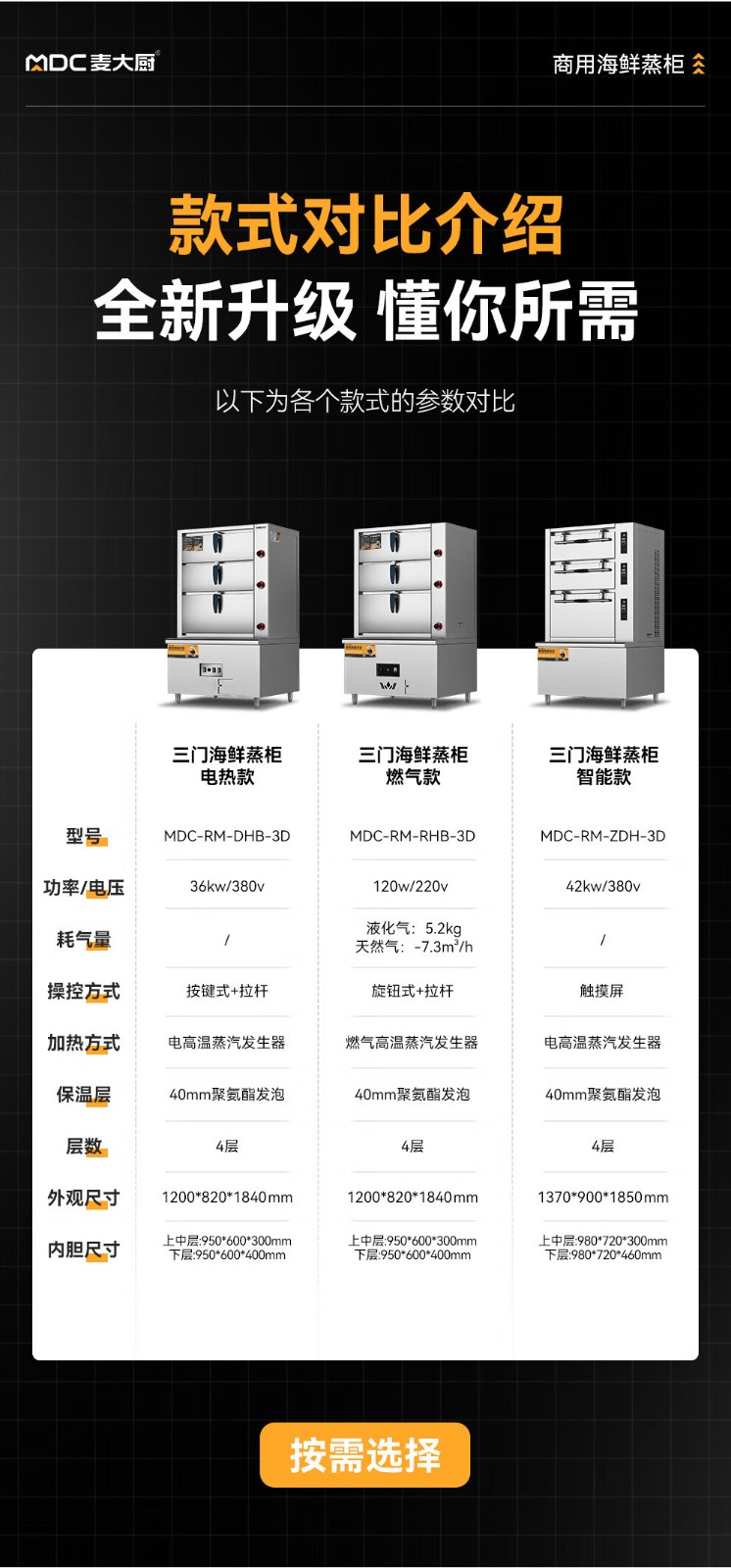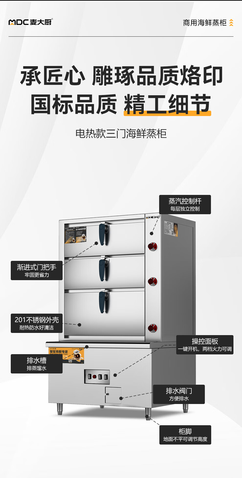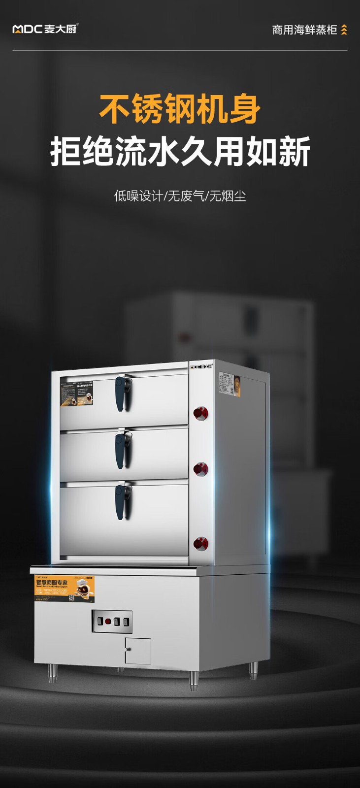 麥大廚商用蒸柜1200mm電熱款三門海鮮蒸柜