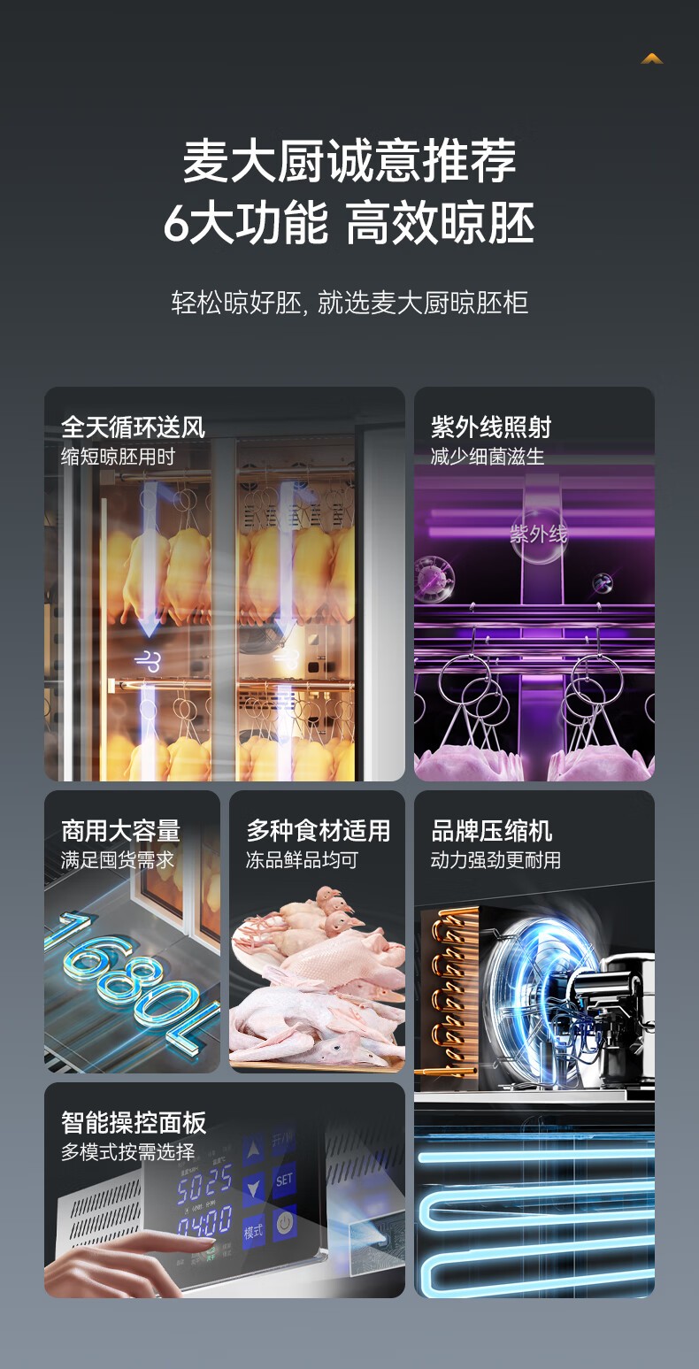 麥大廚旗艦款雙門商用晾胚柜晾鴨風(fēng)干柜