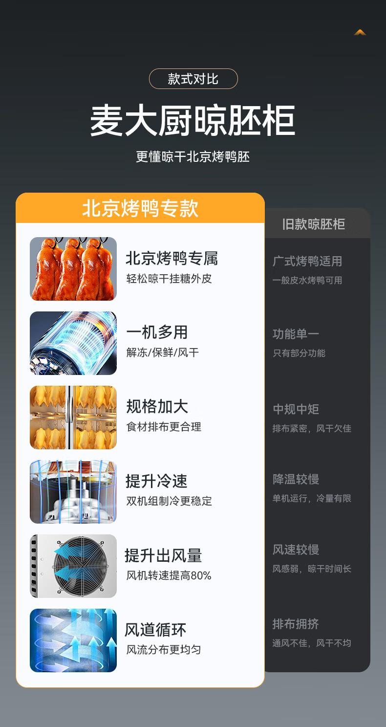 麥大廚北京烤鴨專用雙門晾胚柜商用晾鴨柜
