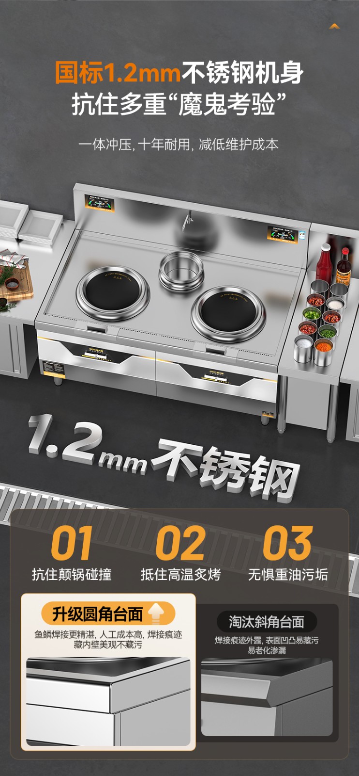 麥大廚旗艦款材質(zhì)雙頭單尾小炒爐商用15KW