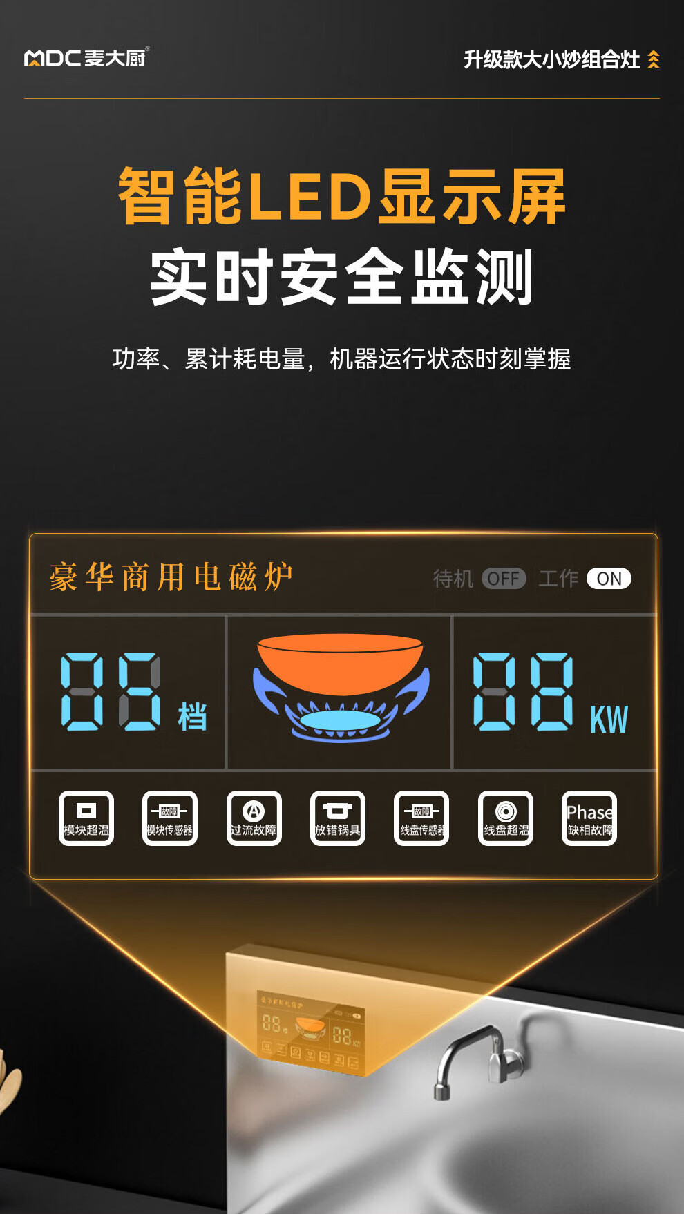 首頁(yè) > 商廚產(chǎn)品 > 電磁灶 > 大小組合爐 >麥大廚升級(jí)款左400右800大小組合爐商用