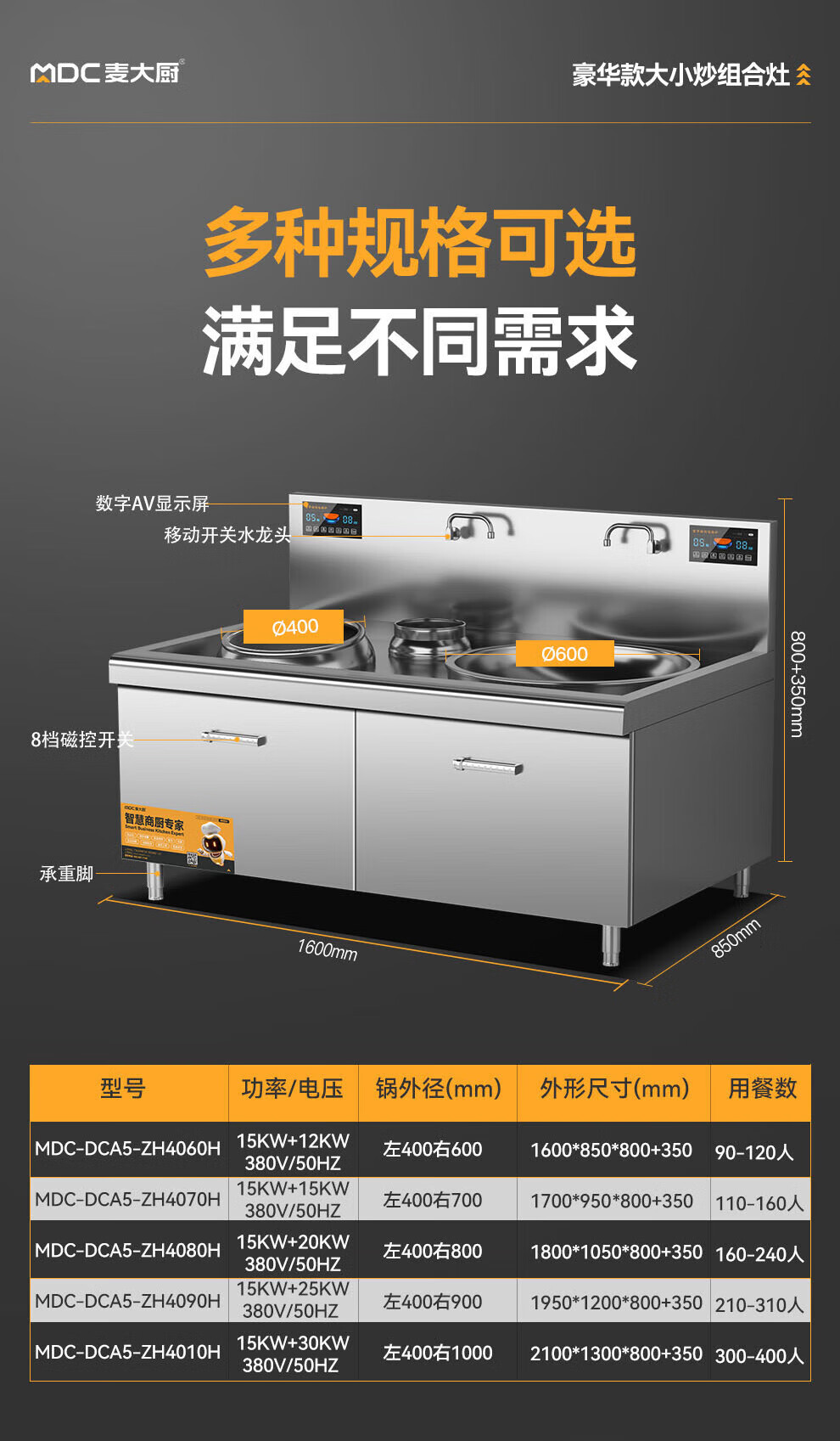 - 更多MDC商用大小組合爐規(guī)格咨詢在線客服