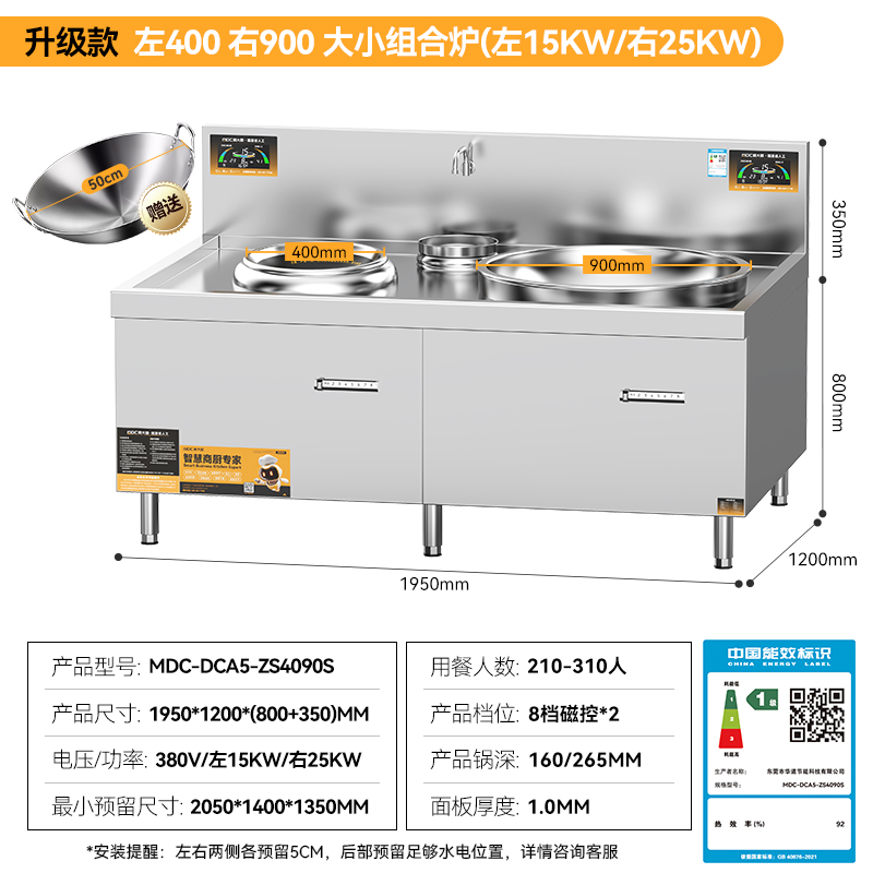 麥大廚升級款左400右1000大小組合爐商用