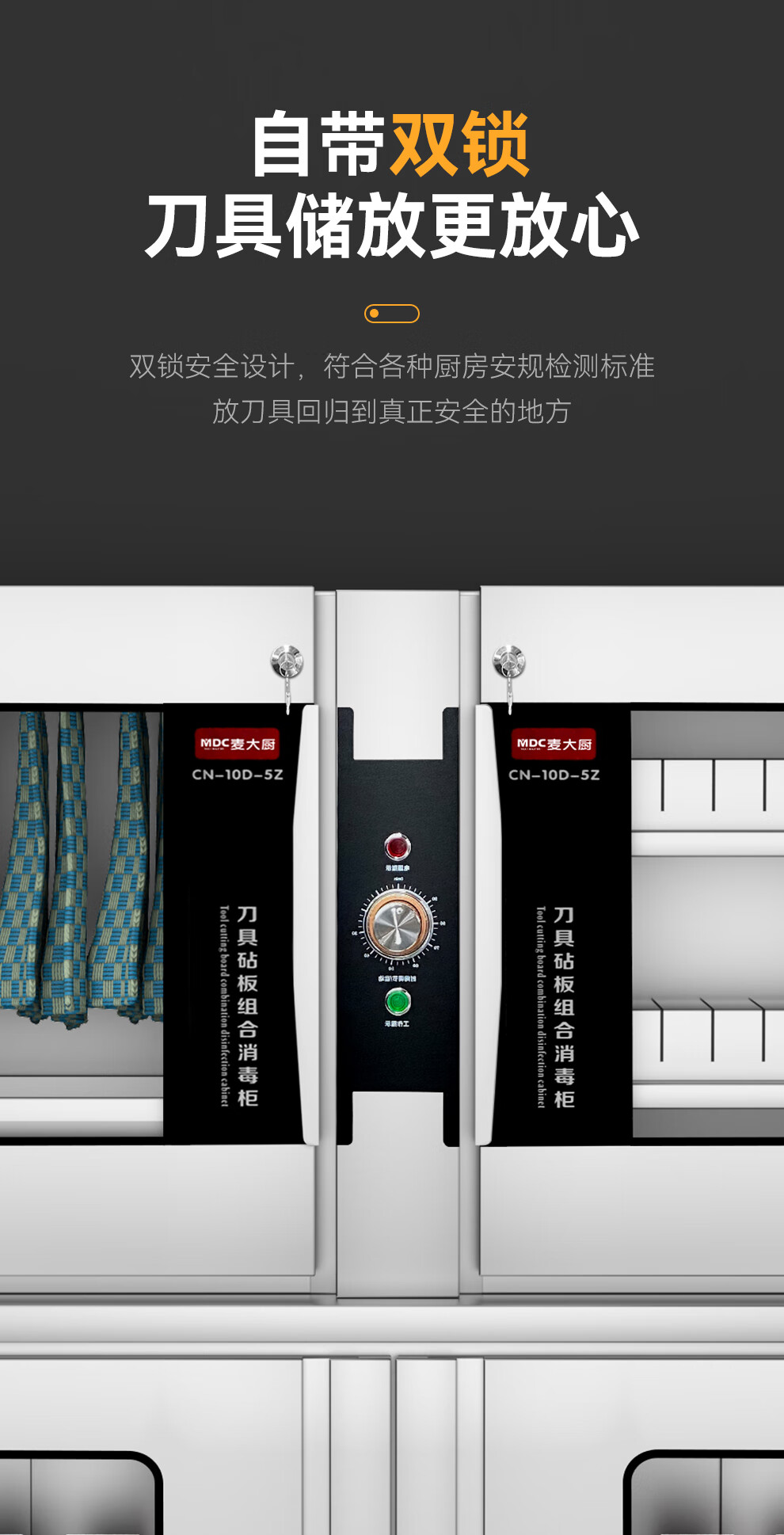 麥大廚旋鈕款750W單門雙層刀具砧板組合消毒柜(臭氧+紫外線+熱風(fēng)循環(huán))