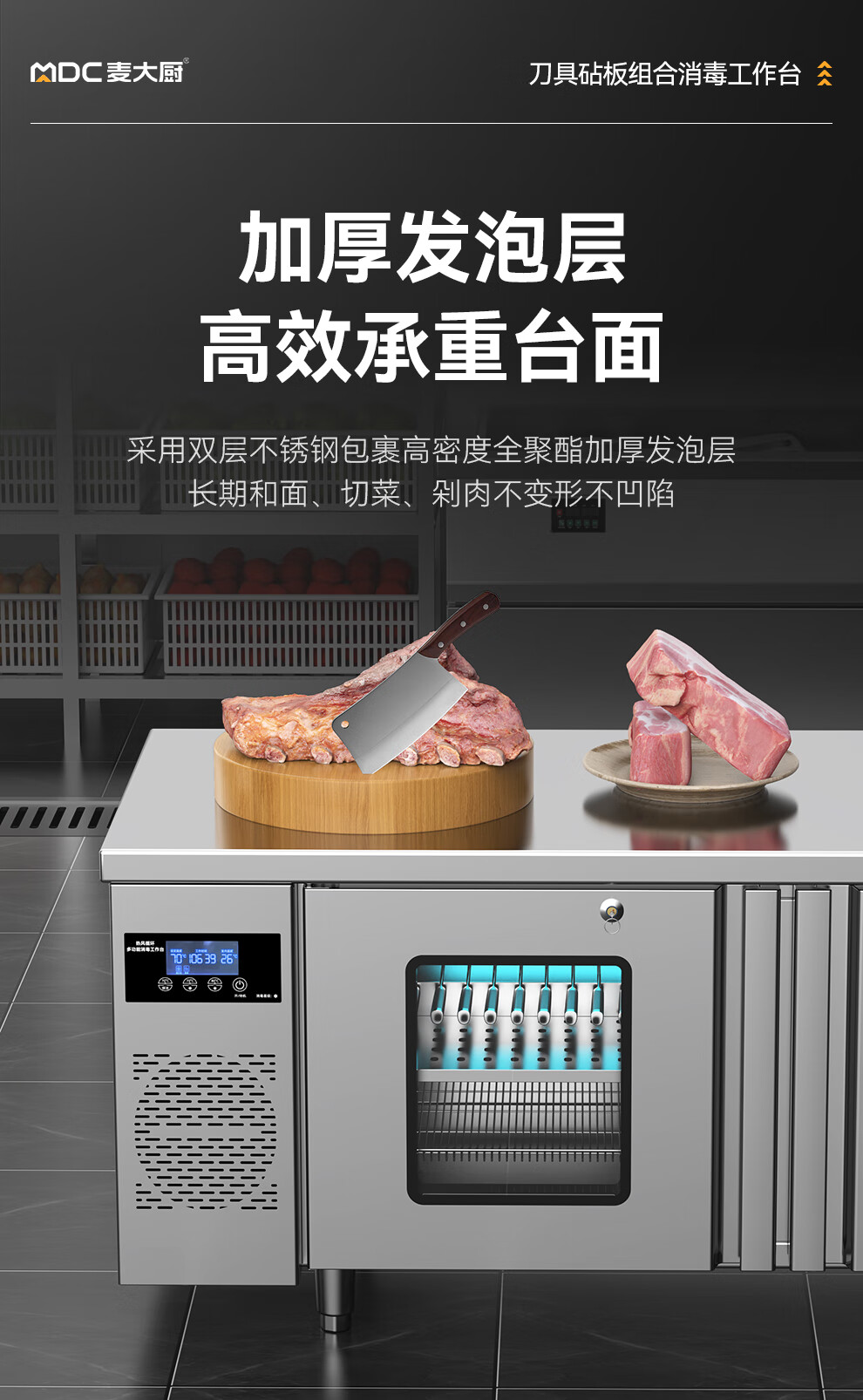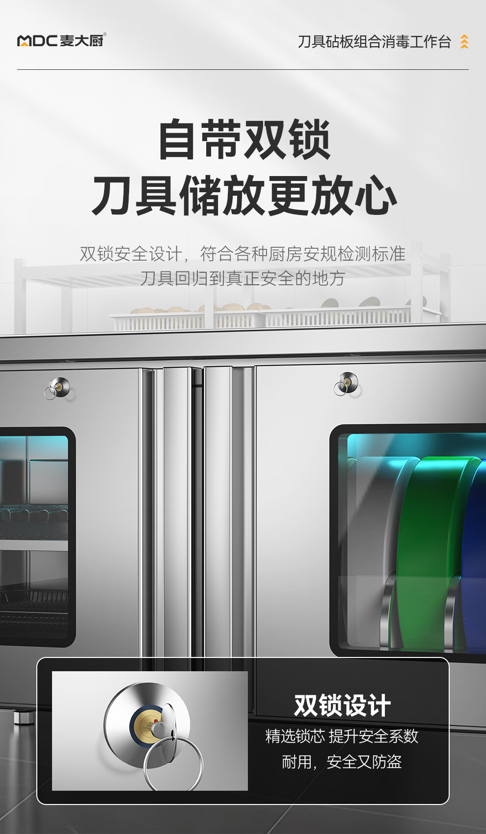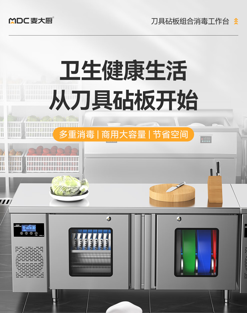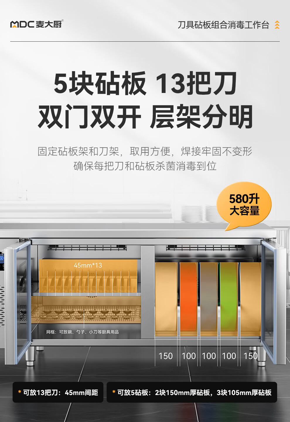 麥大廚雙門刀具砧板組合消毒工作臺(tái)1800A-13D-5Z(臭氧+紫外線+熱風(fēng))
