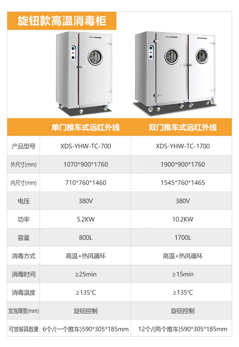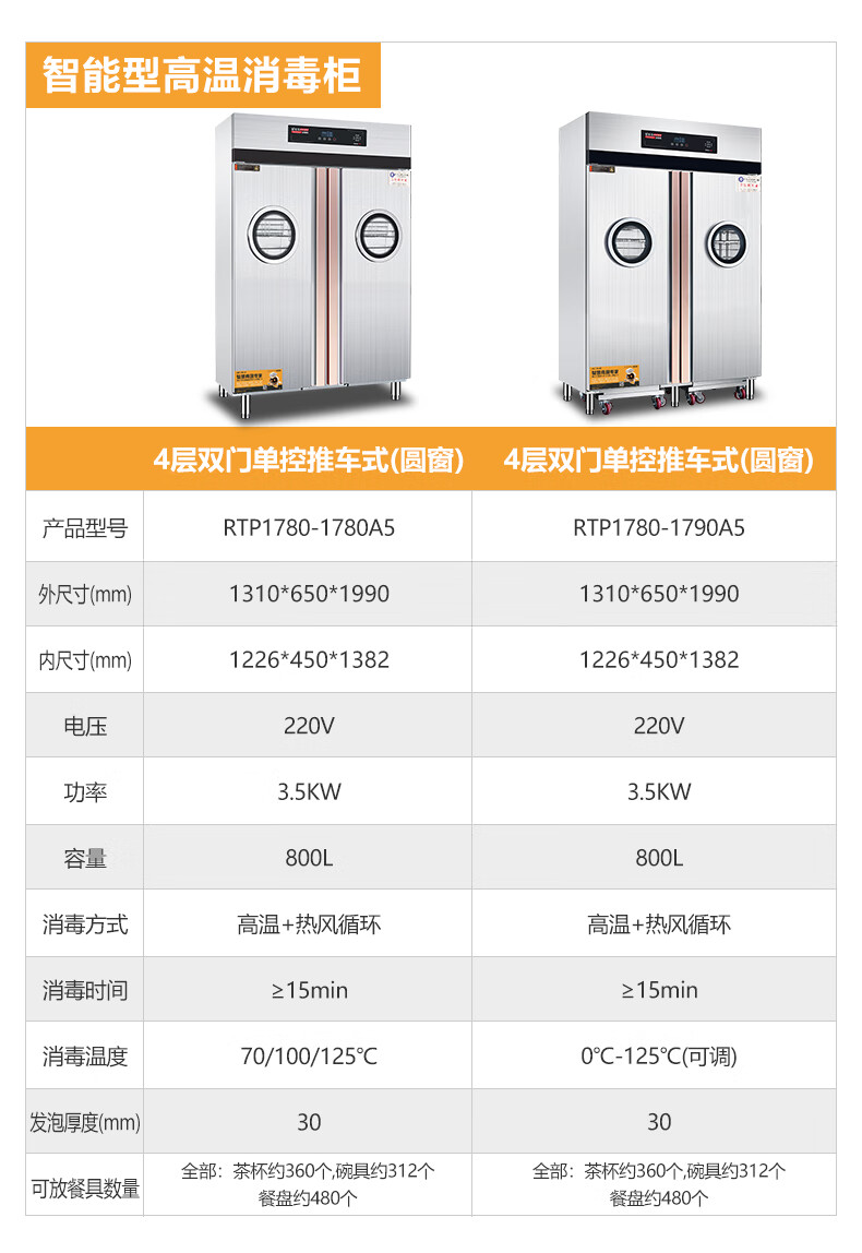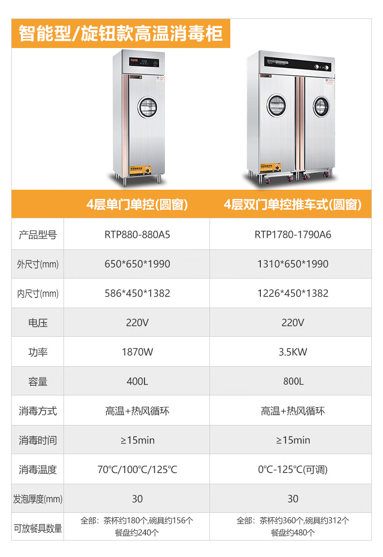 消毒方式:高溫+熱風(fēng)循環(huán)(≥15min)