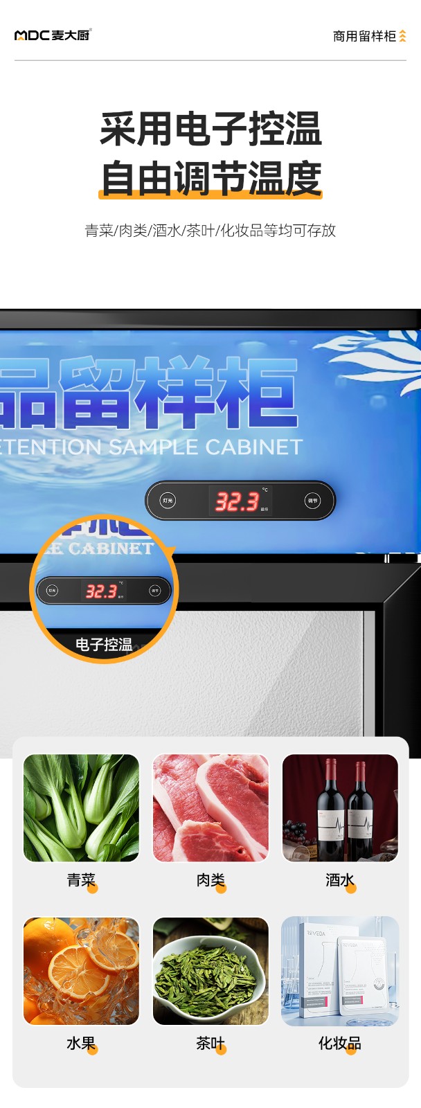 麥大廚電控款單門(mén)商用食品留樣柜180L-270L