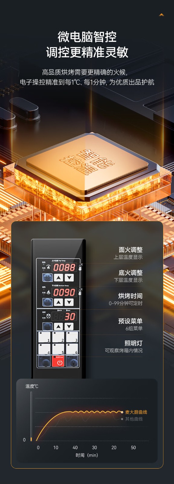 麥大廚豪華款一層一盤電腦控溫上下獨立烤箱3.2KW