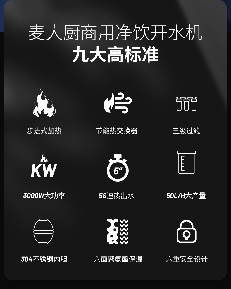 麥大廚步進(jìn)式柜式三級(jí)過濾二開130L商用開水機(jī)