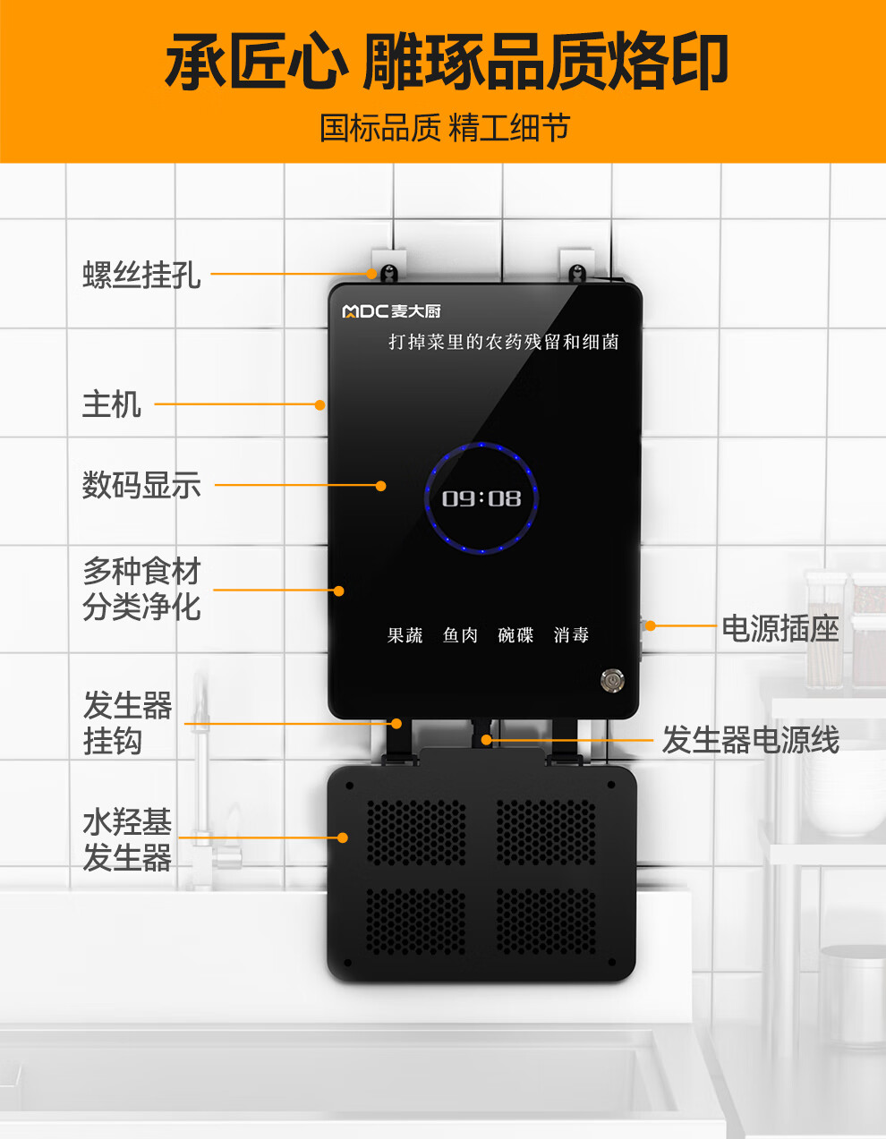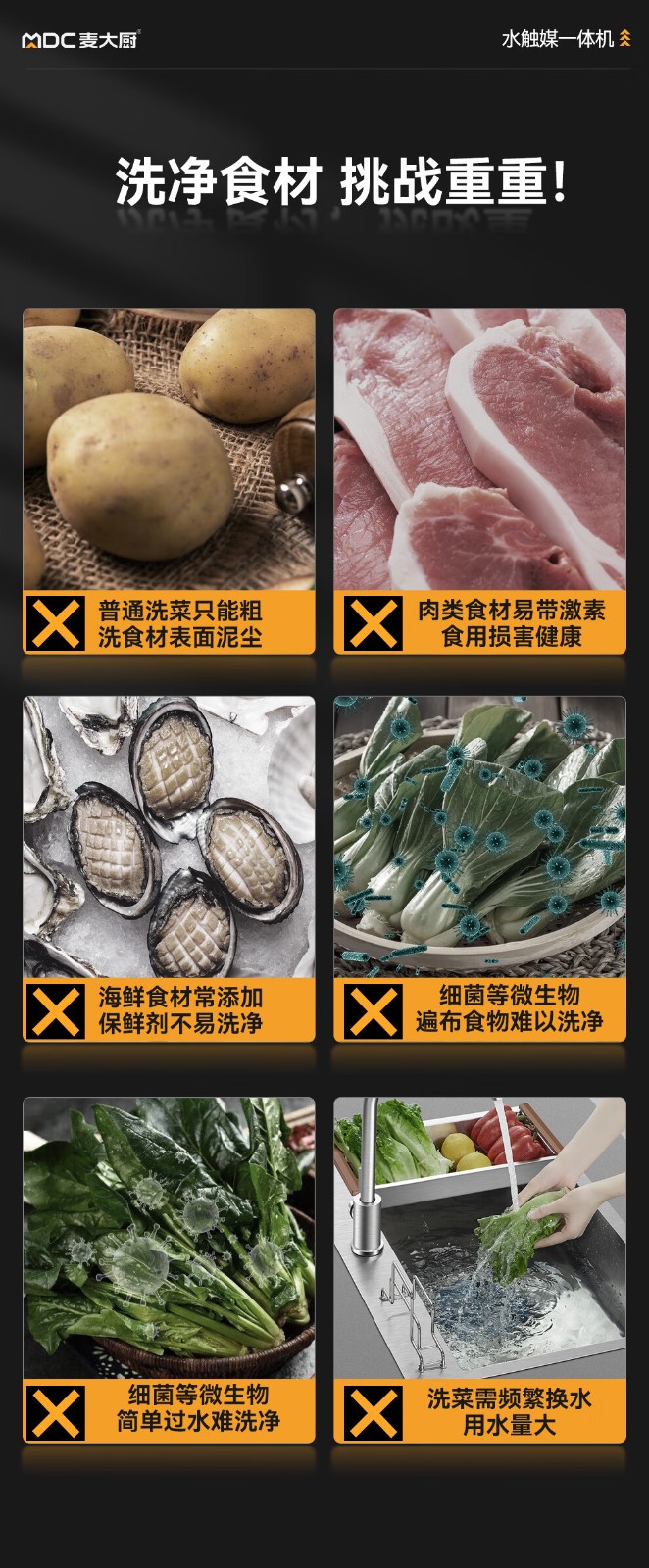 麥大廚1.0m單槽壁掛式水觸媒凈化清洗一體機(jī)商用