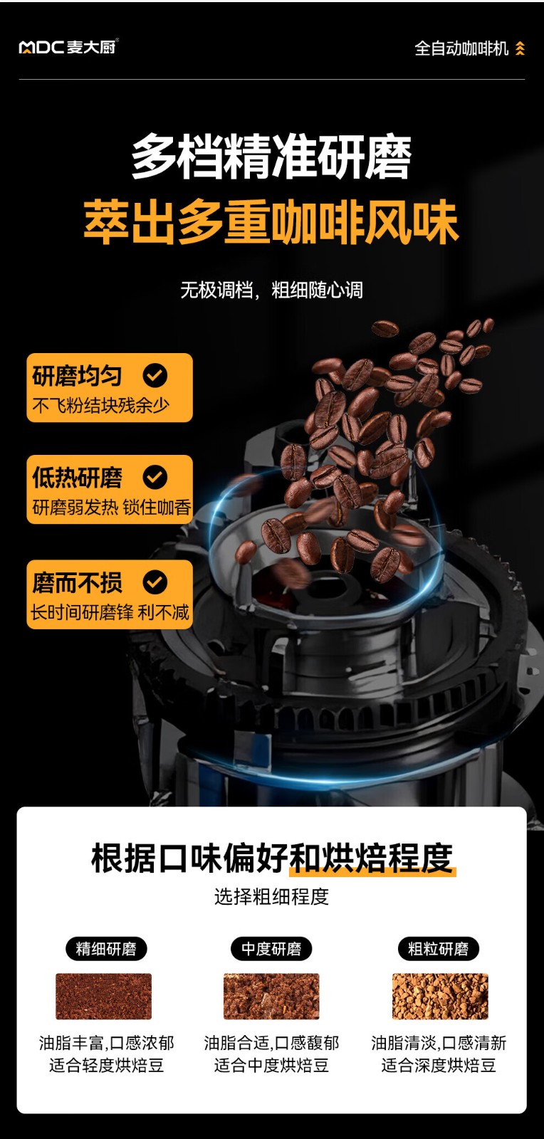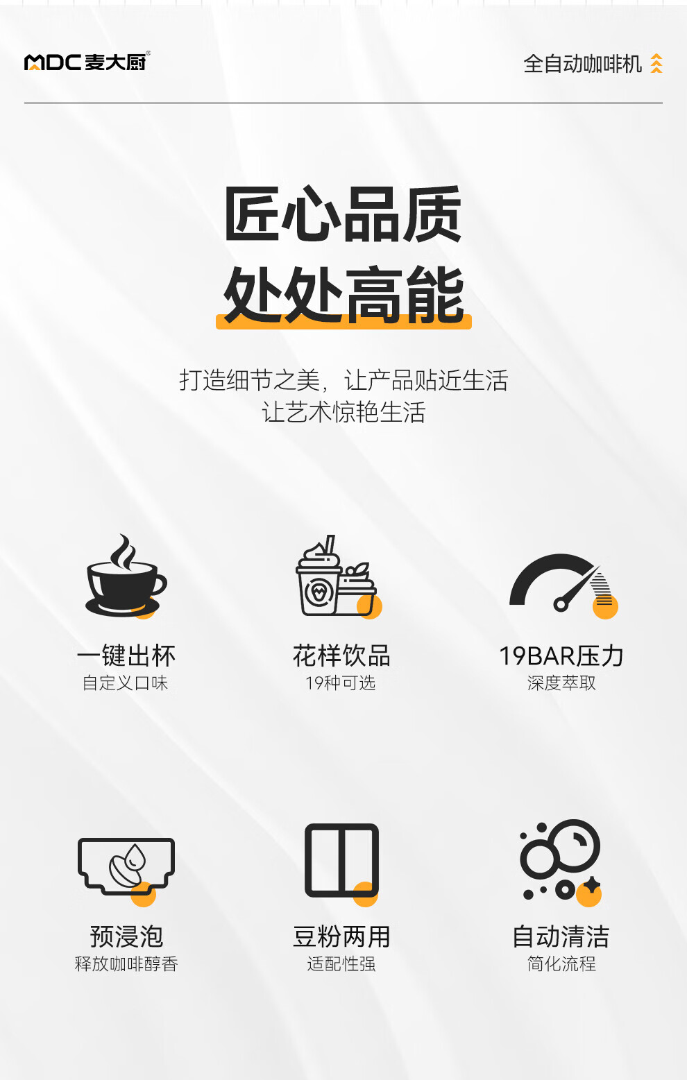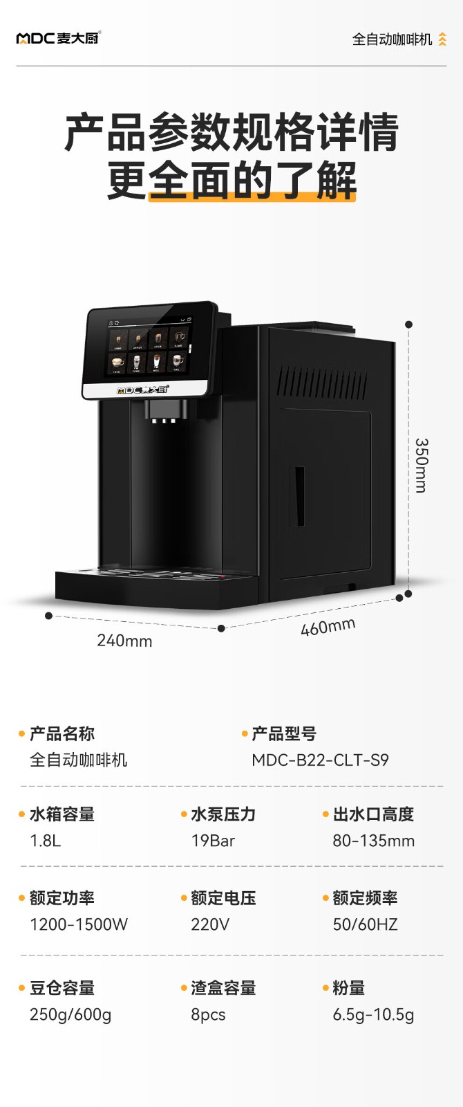 麥大廚B22系列標準款家用無底座1.5kw全自動咖啡機