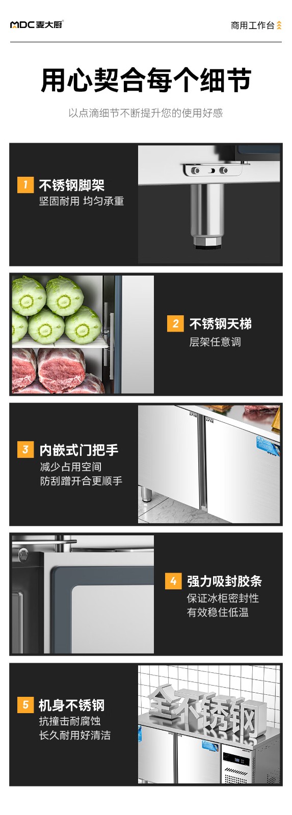 麥大廚1.8M標(biāo)準(zhǔn)款175W直冷冷凍工作臺0.8