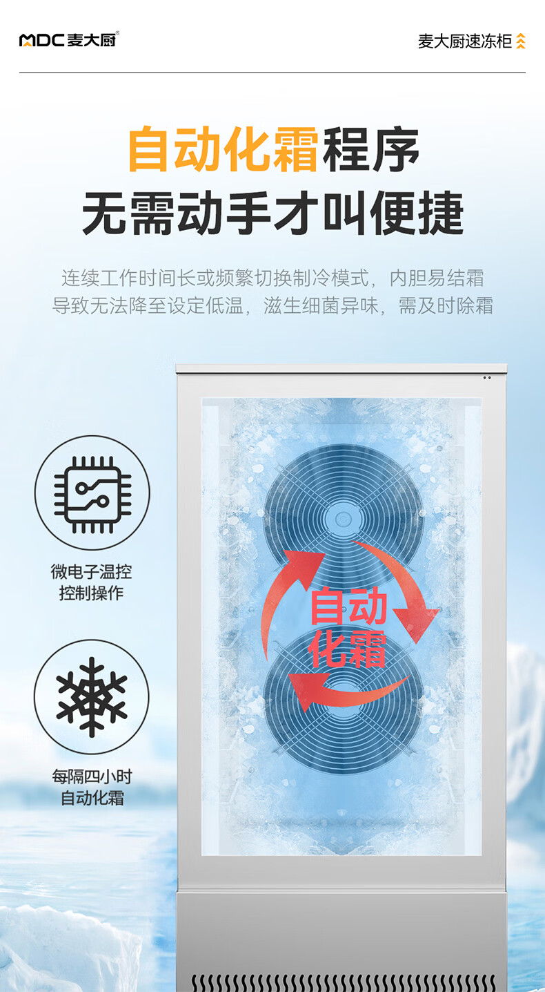首頁 > 商廚產(chǎn)品 > 制冰機(jī) > 商用速凍柜 > 麥大廚豪華推車款60盤-45℃風(fēng)冷速凍柜9600W