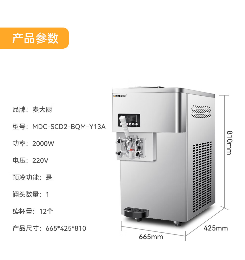 麥大廚豪華款單頭臺式冰淇淋機2.0KW