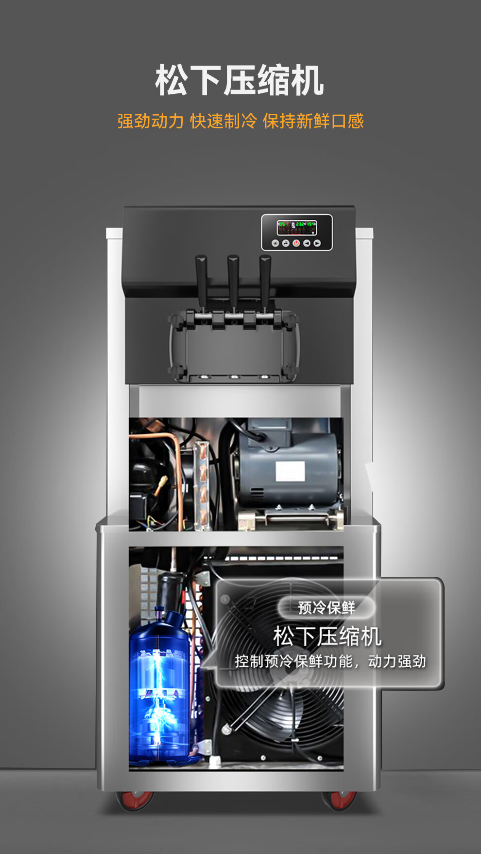 首頁 > 商廚產(chǎn)品 > 制冰機 > 商用冰淇淋機 >麥大廚經(jīng)濟(jì)款三頭立式冰淇淋機2.2KW