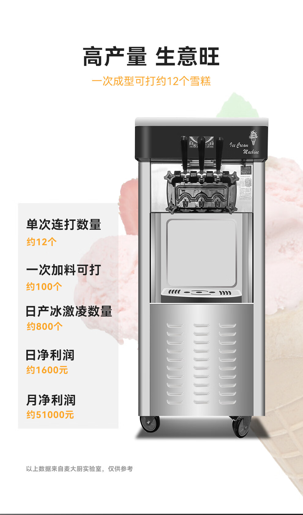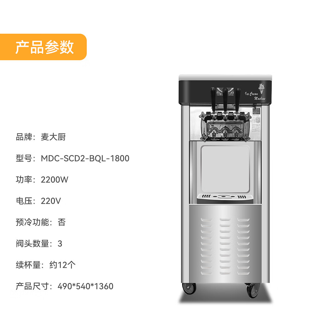 麥大廚經(jīng)濟(jì)款三頭立式冰淇淋機2.2KW