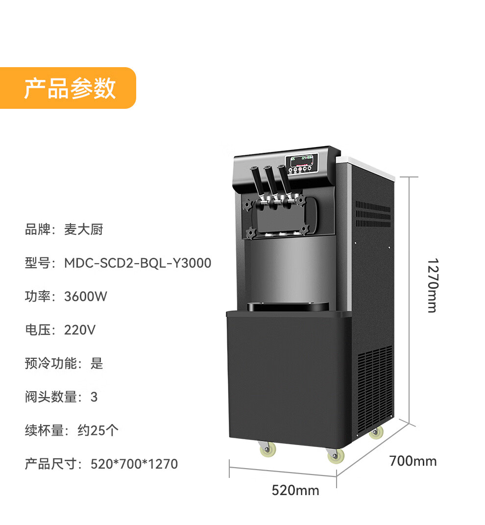 麥大廚升級(jí)款三頭立式冰淇淋機(jī)3.6KW