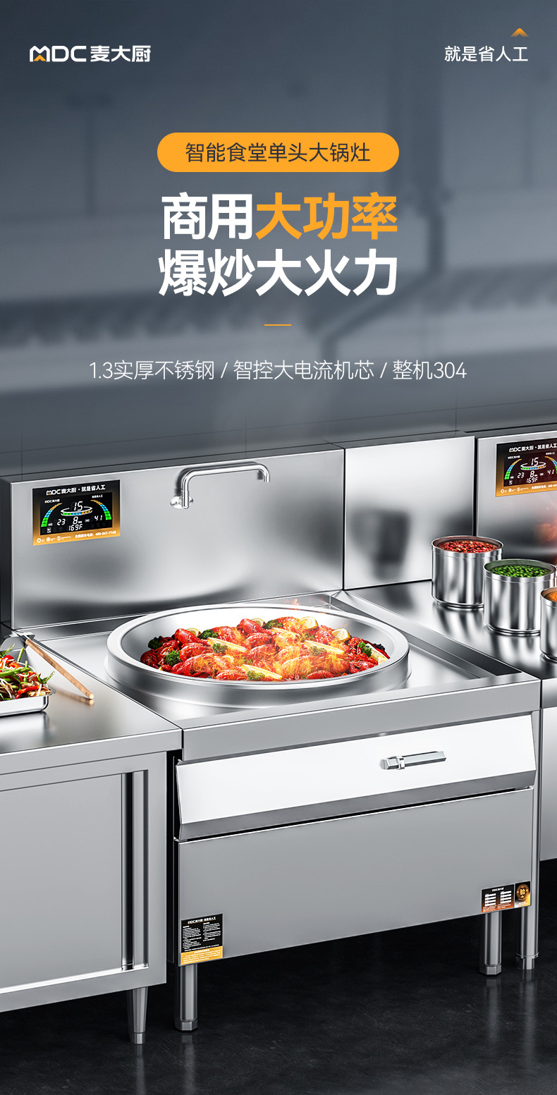麥大廚星麥款304材質(zhì)電磁大鍋灶單頭大鍋灶800