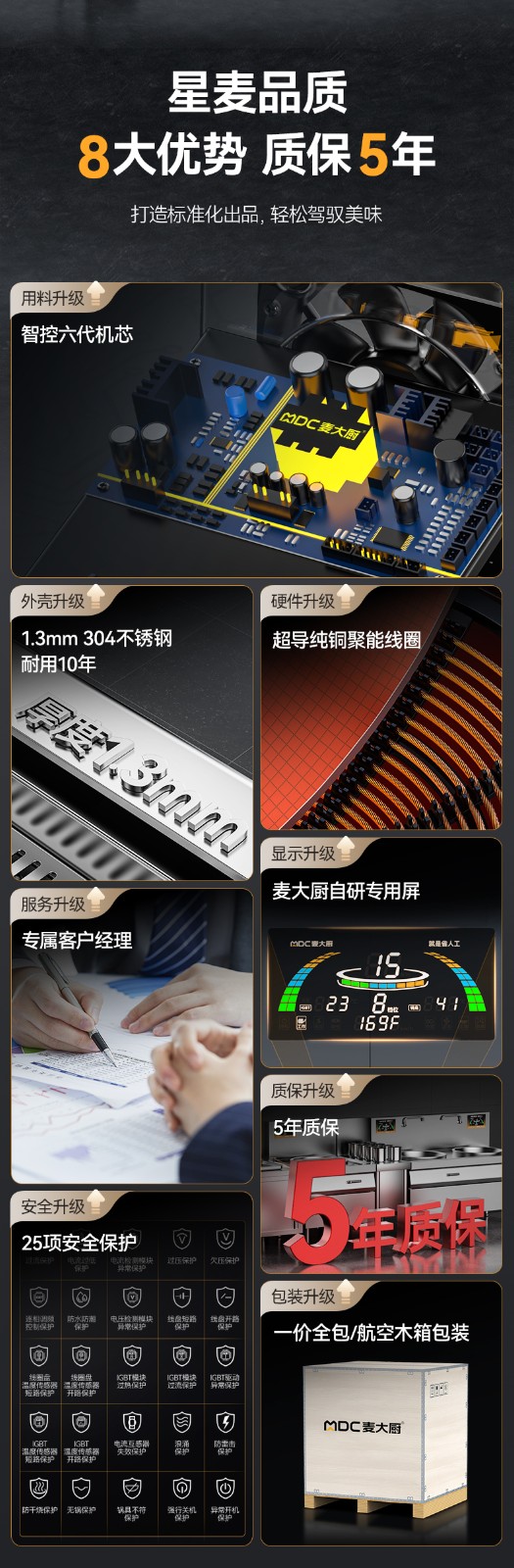 麥大廚星麥款304材質(zhì)電磁大炒爐雙頭大鍋灶700