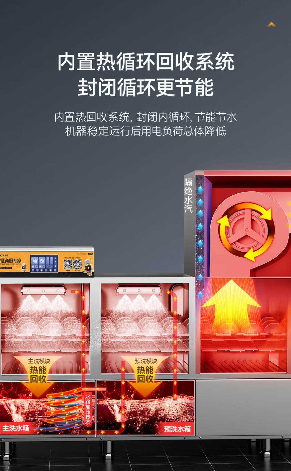 麥大廚金麥款平放式觸屏熱回收1.7m單缸單噴洗碗機