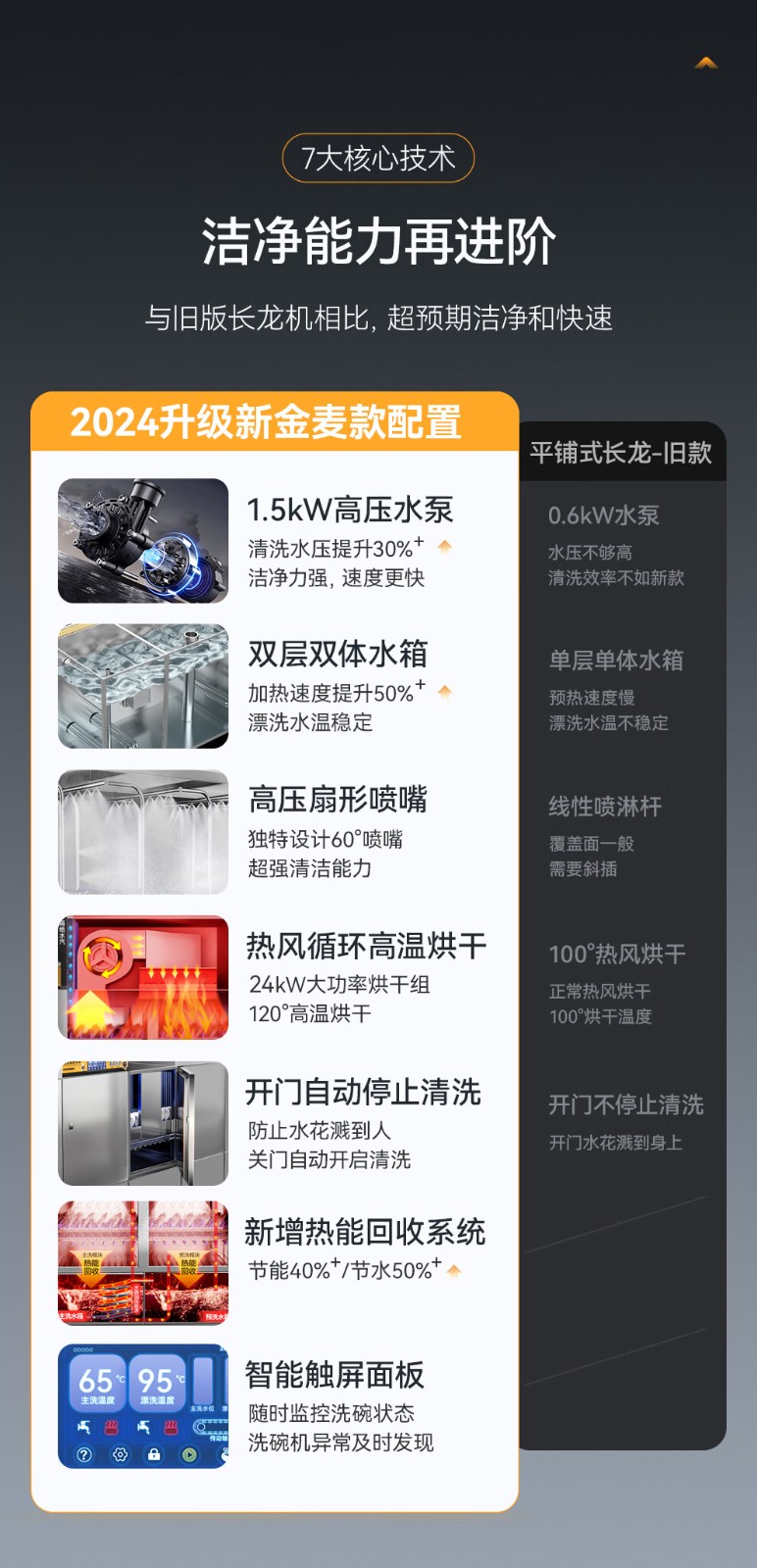 麥大廚金麥款平放式觸屏熱回收3.2m三缸雙噴洗碗機