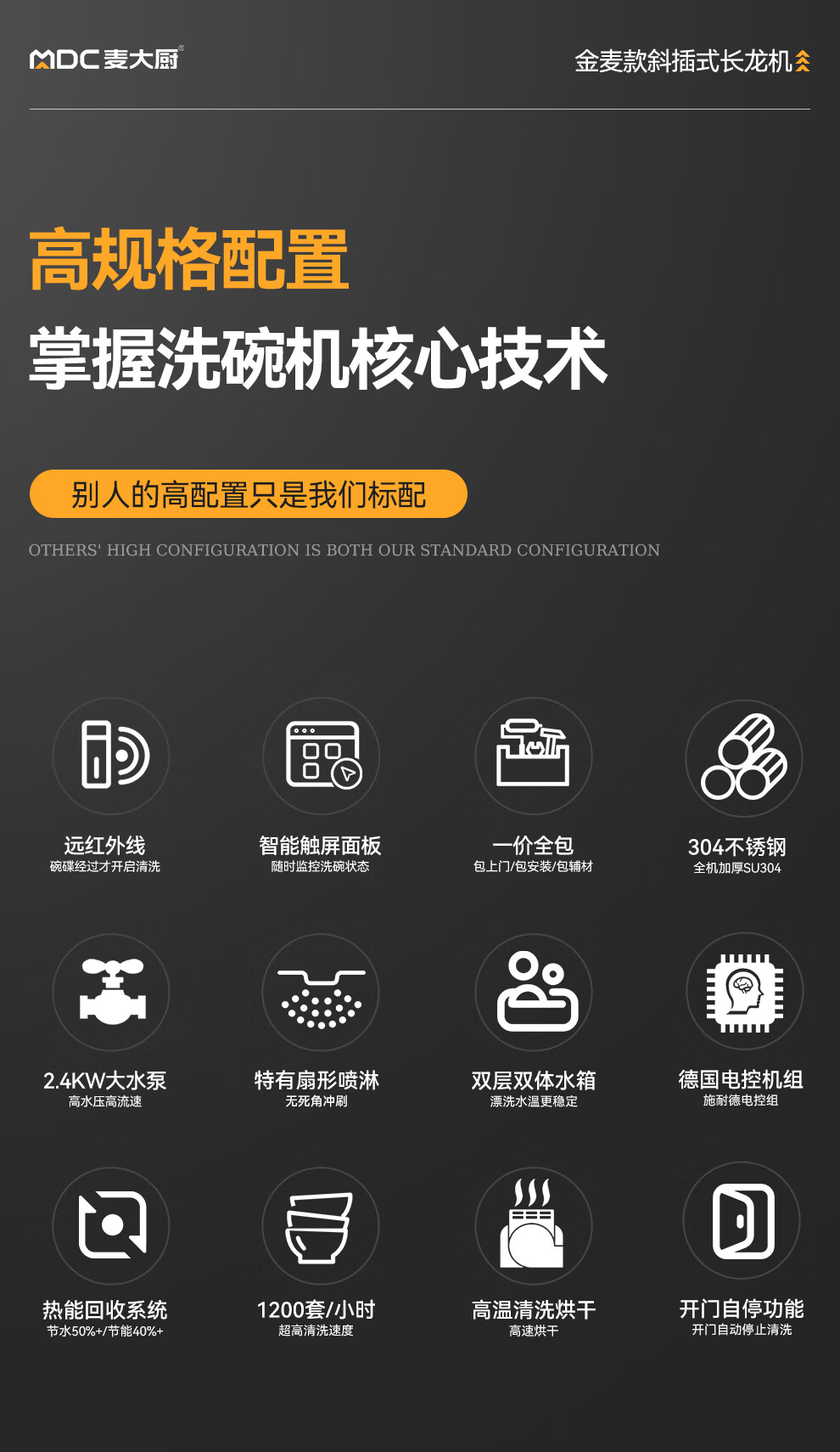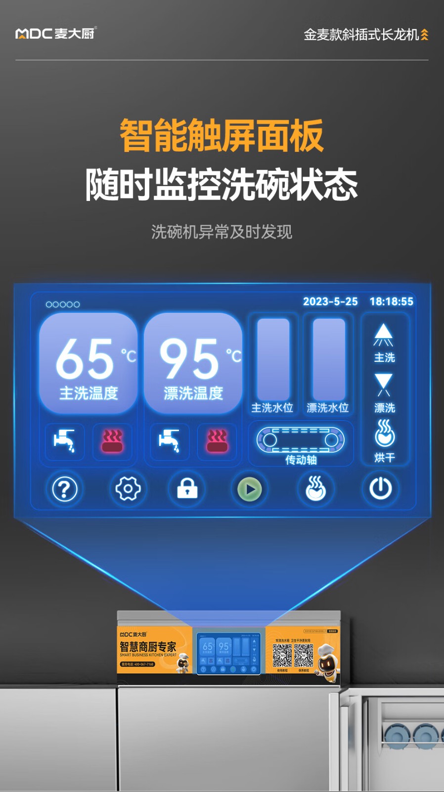 麥大廚金麥款斜插式觸屏熱回收2.95m雙缸雙噴洗碗機(jī)