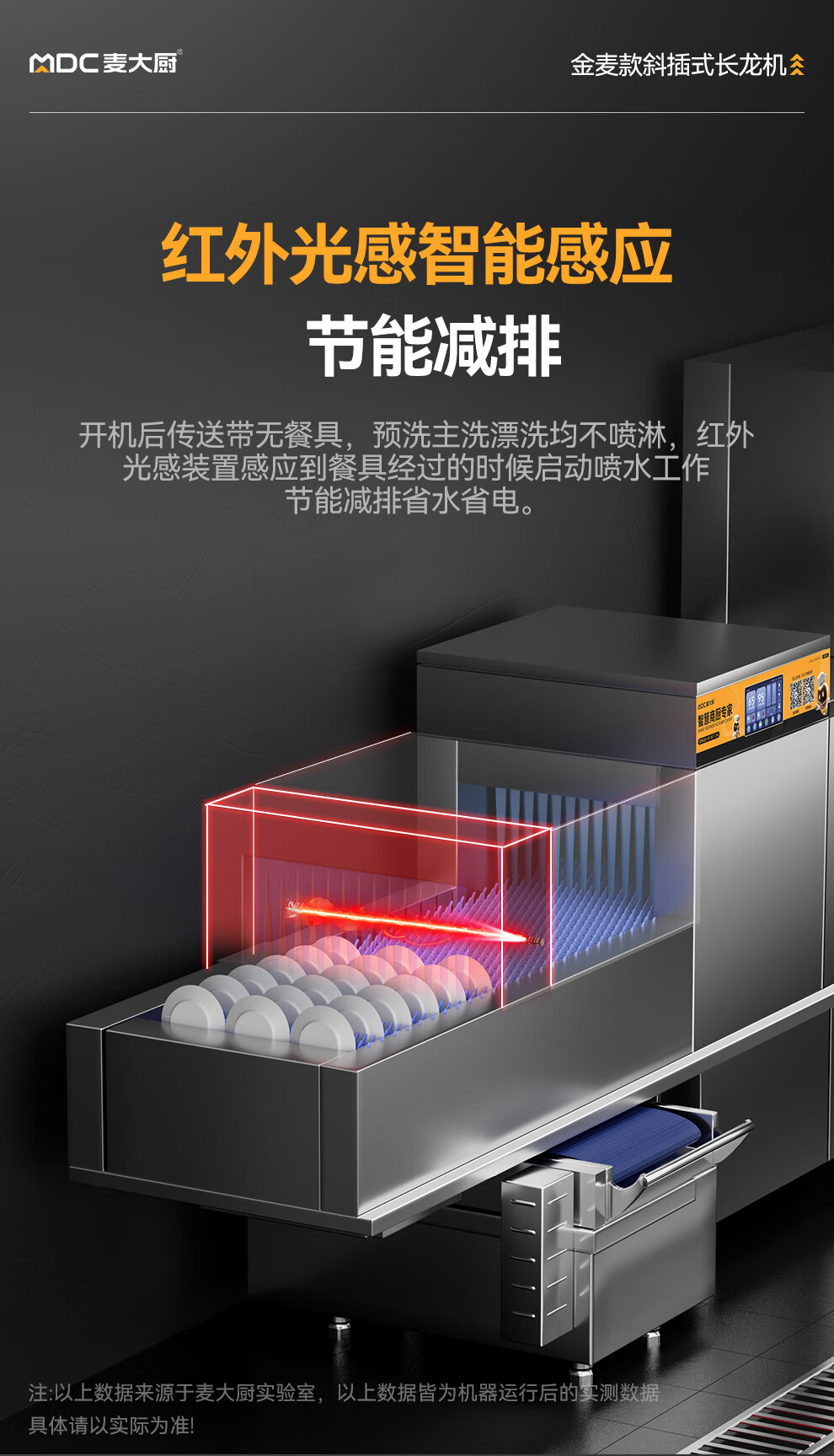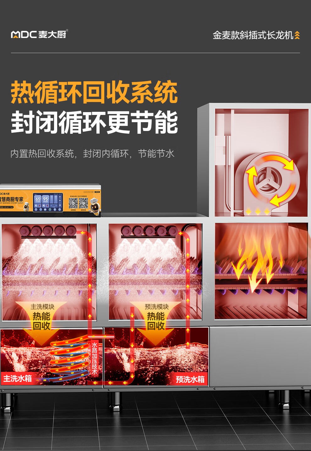 麥大廚金麥款斜插式觸屏熱回收4.45m雙缸雙噴單烘洗碗機