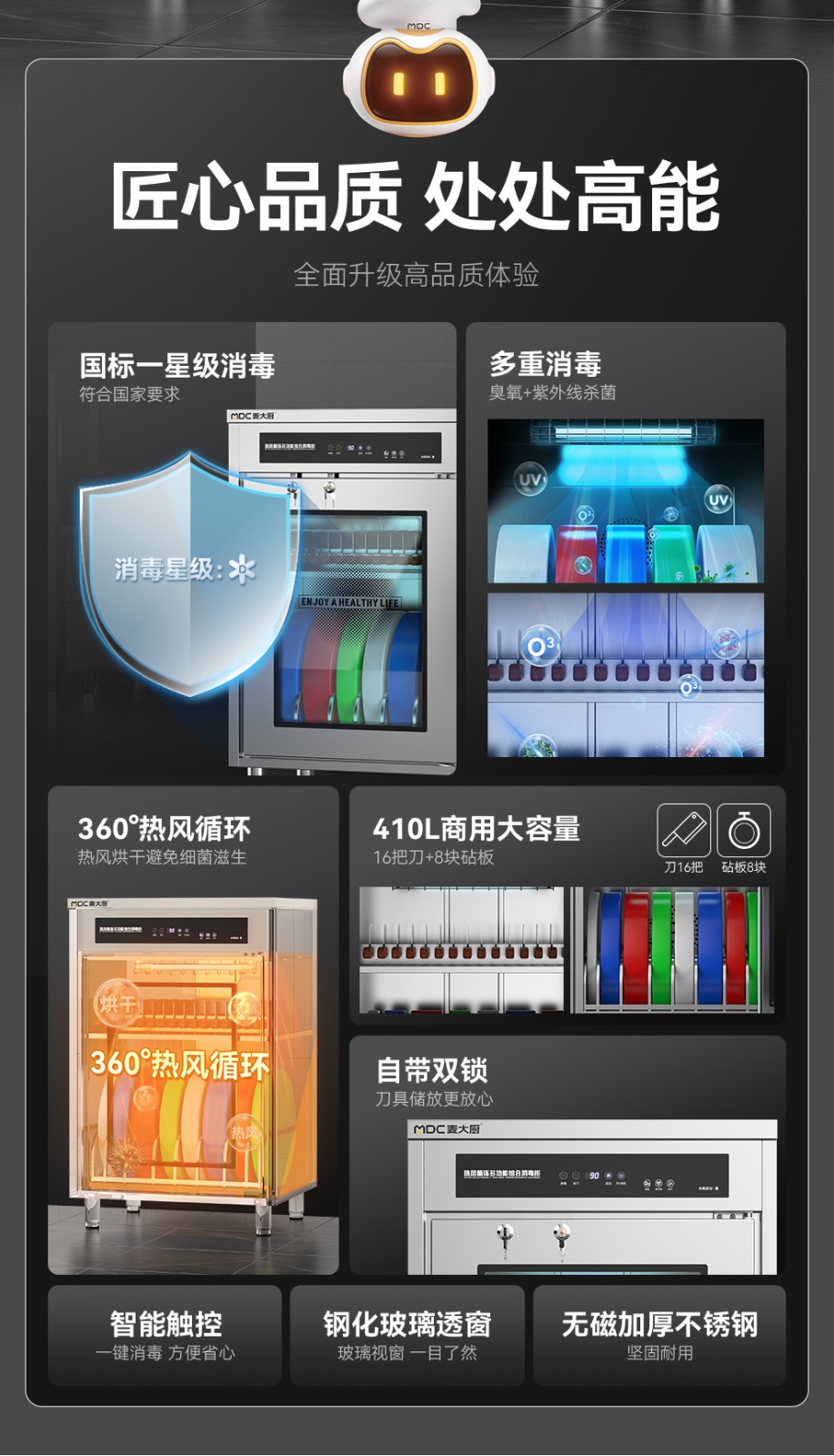 麥大廚智能款單門雙層刀具砧板組合臭氧紫外線熱風(fēng)循環(huán)消毒柜