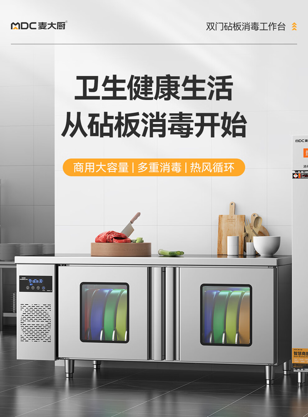 首頁(yè) > 商廚產(chǎn)品 > 消毒柜 > 刀具砧板柜 >麥大廚1.8m雙門(mén)砧板組合臭氧紫外線熱風(fēng)循環(huán)消毒工作臺(tái)