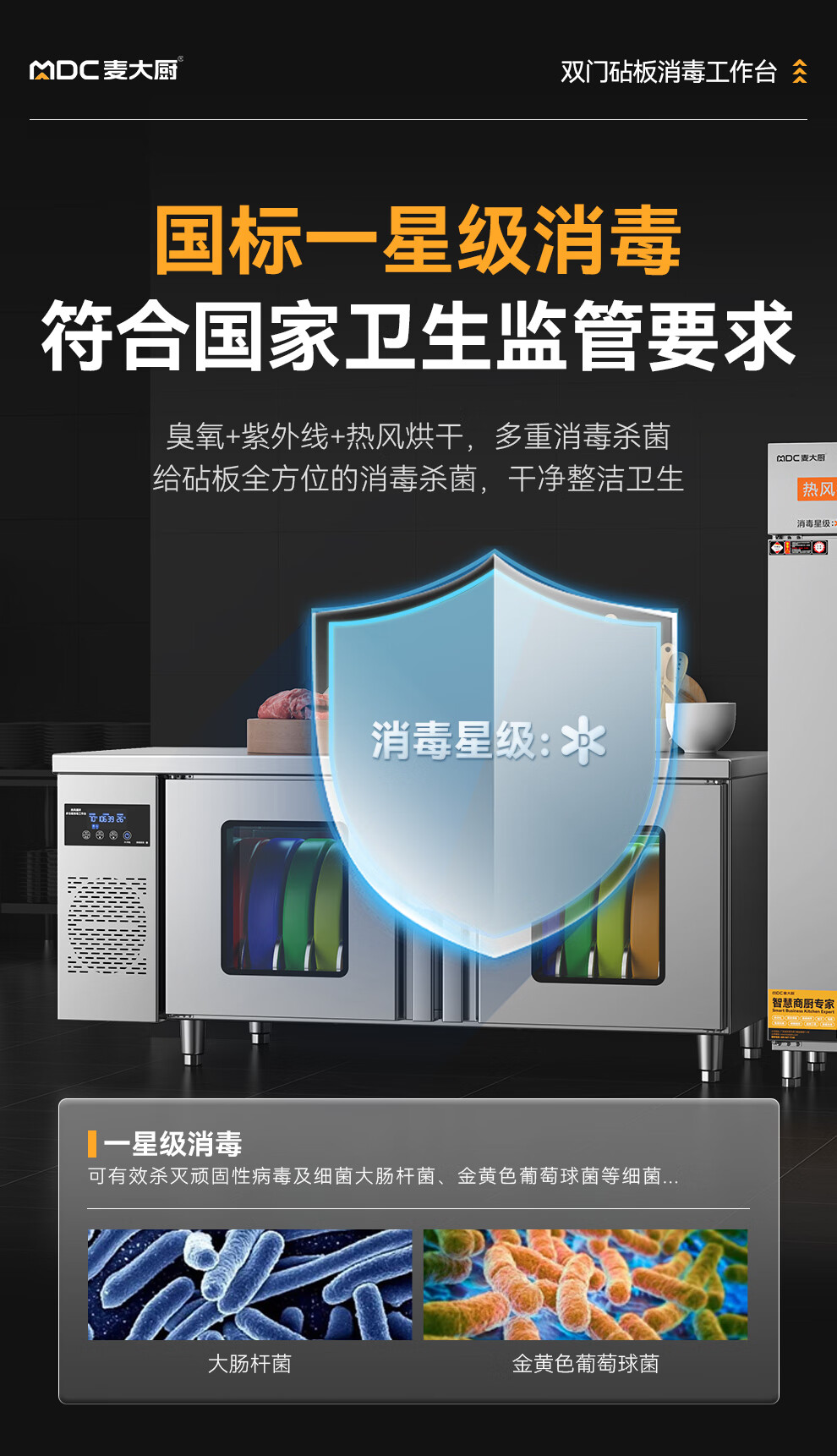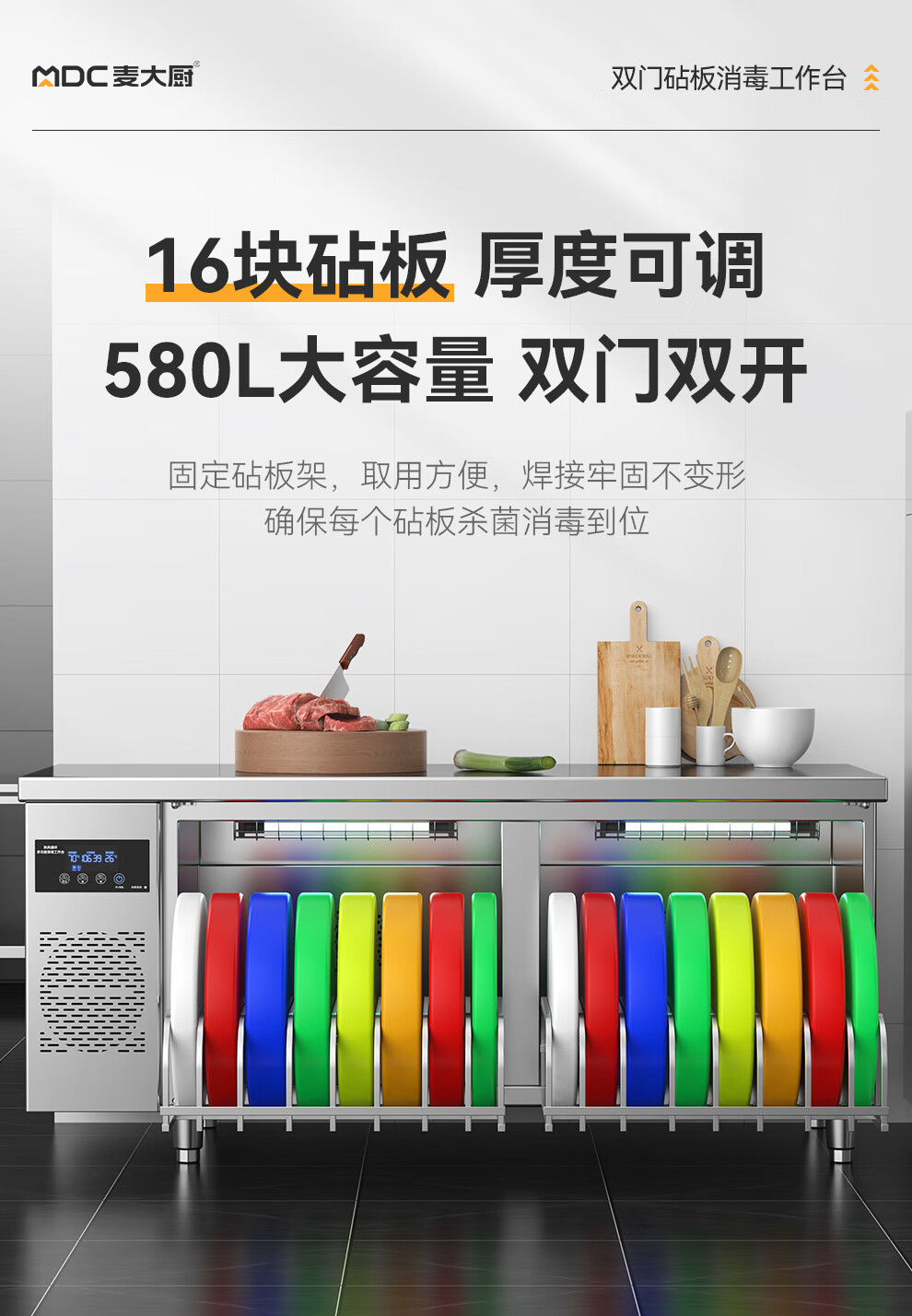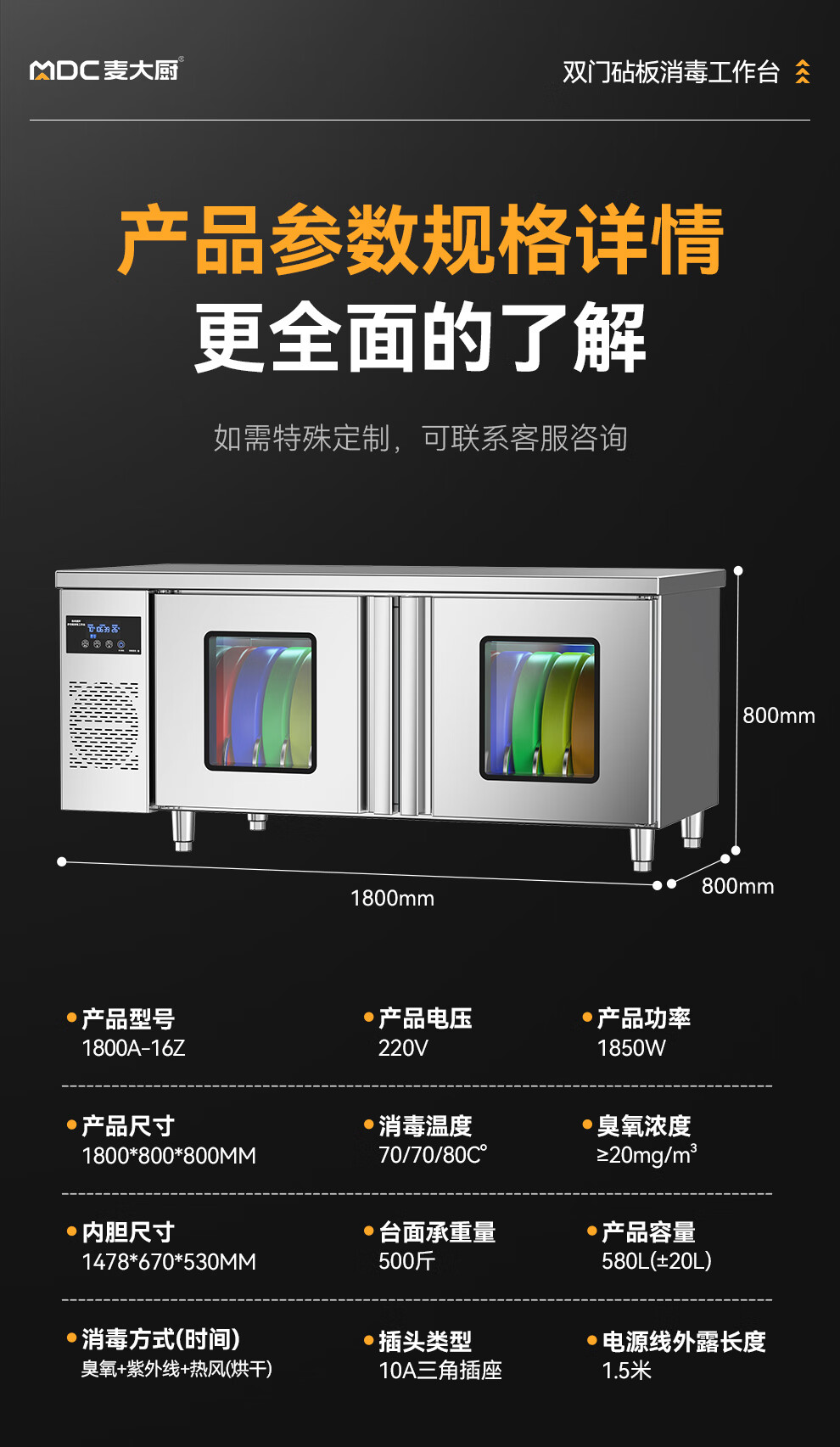 麥大廚1.8m雙門(mén)砧板組合臭氧紫外線熱風(fēng)循環(huán)消毒工作臺(tái)