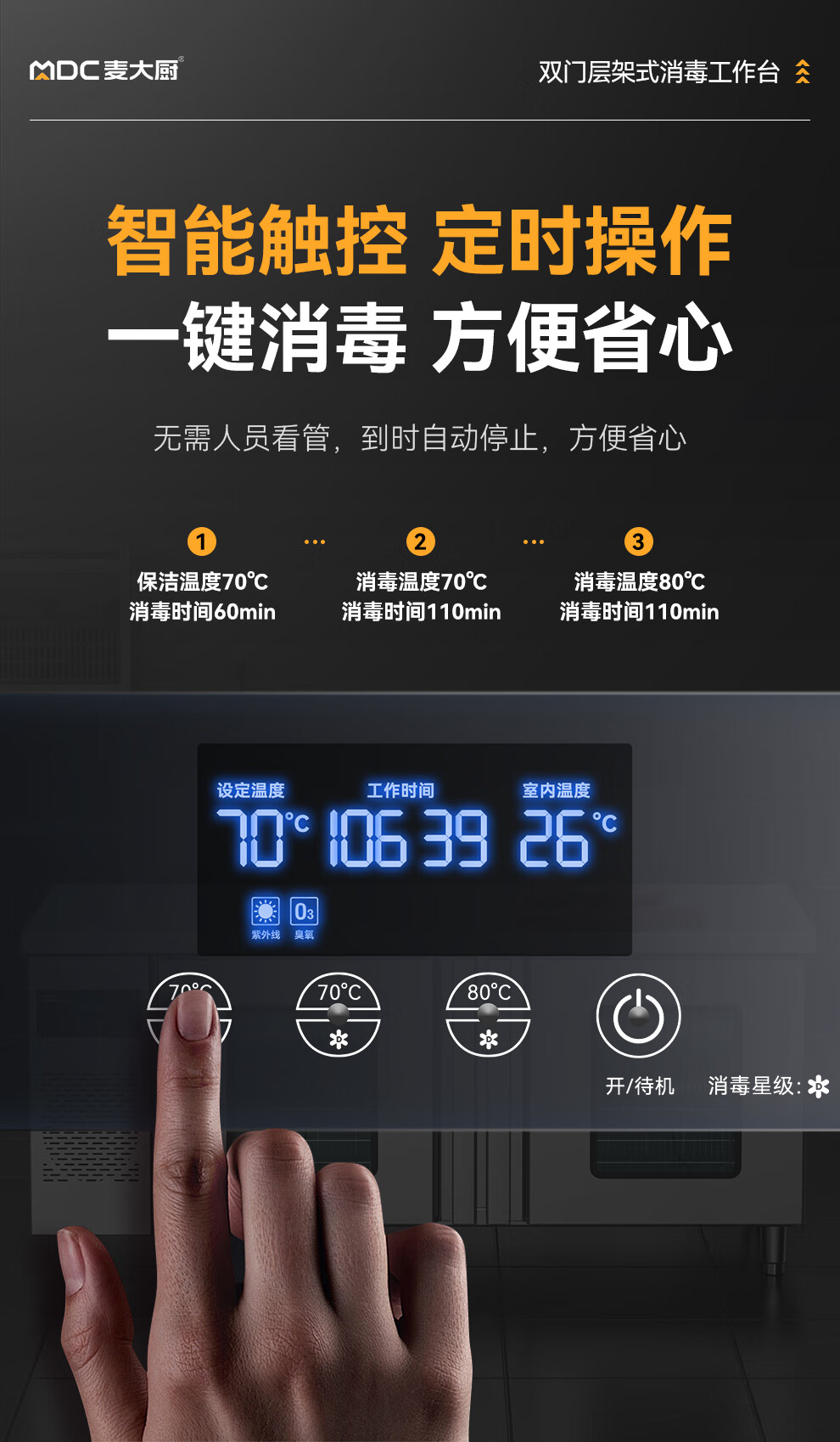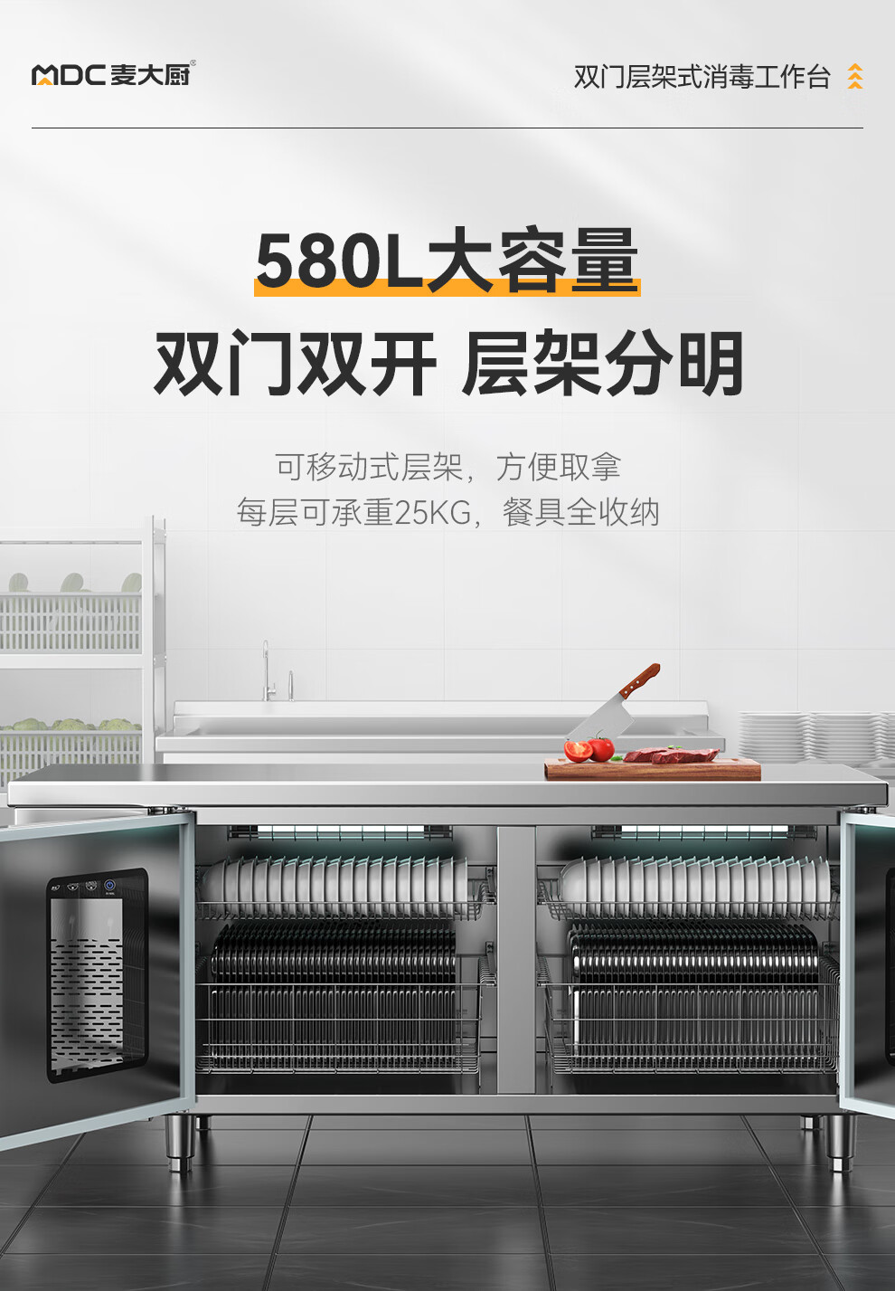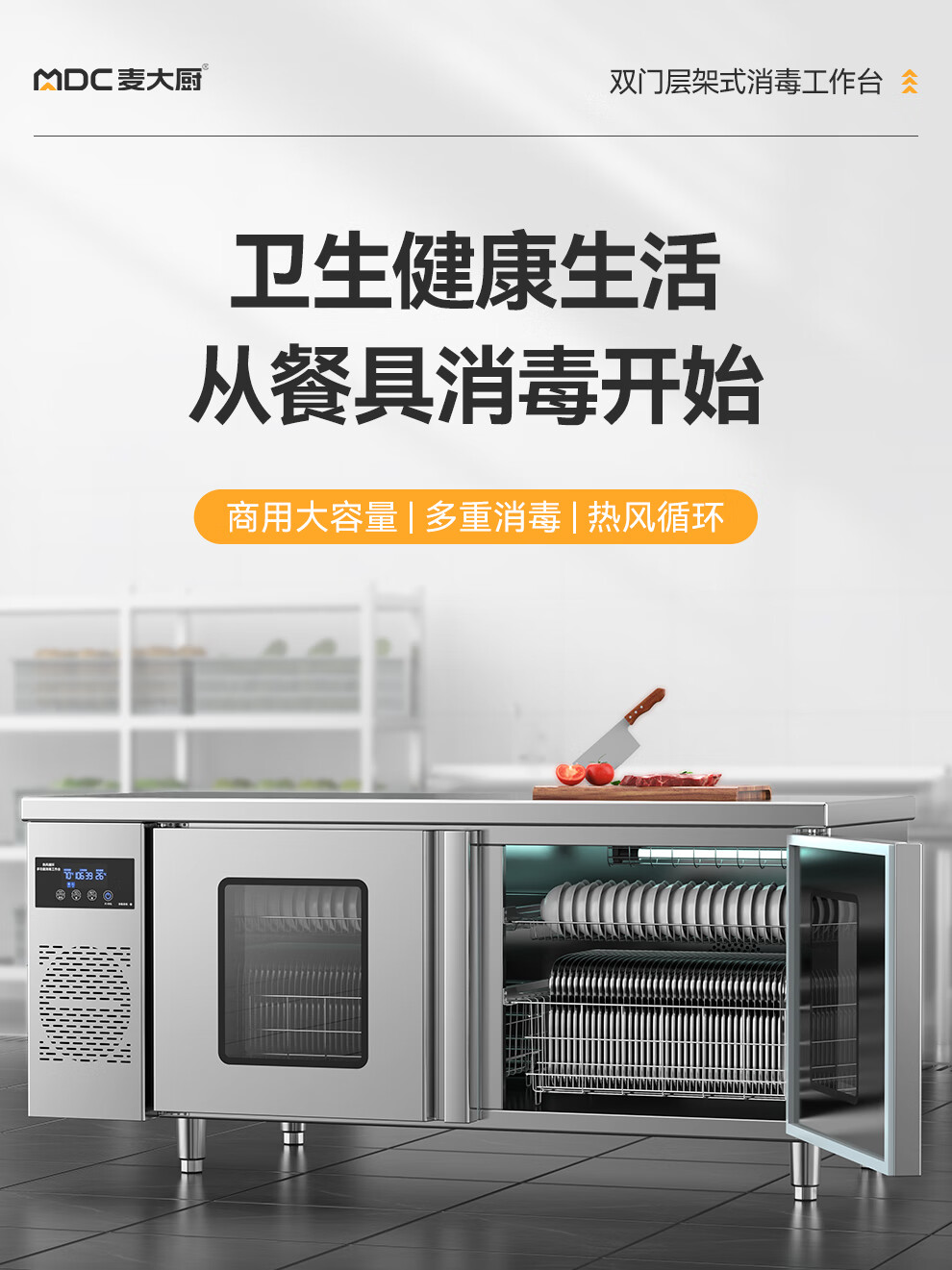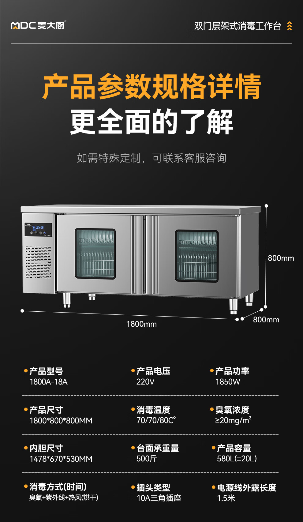 麥大廚1.8m雙門層架式臭氧紫外線熱風(fēng)循環(huán)消毒工作臺