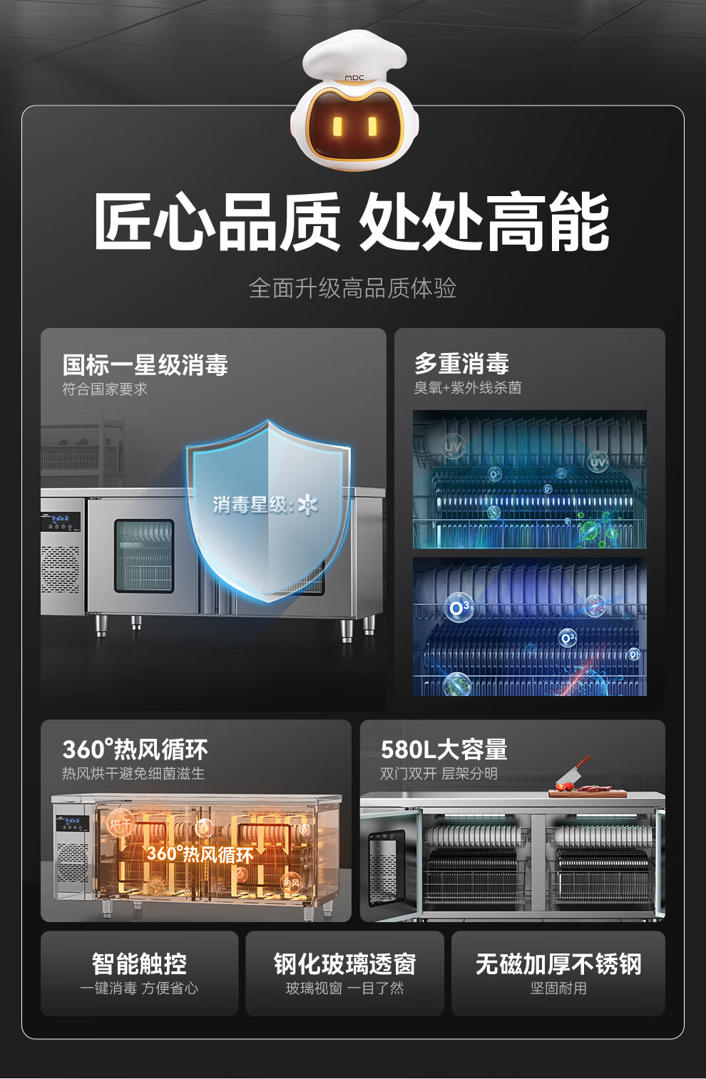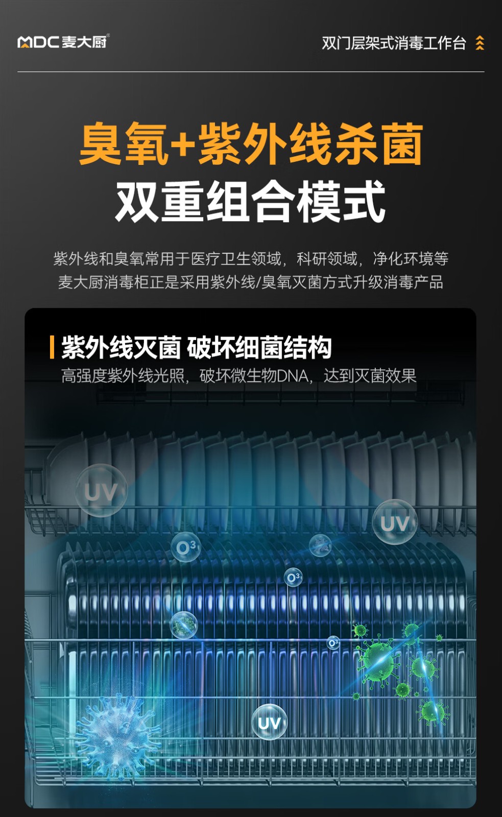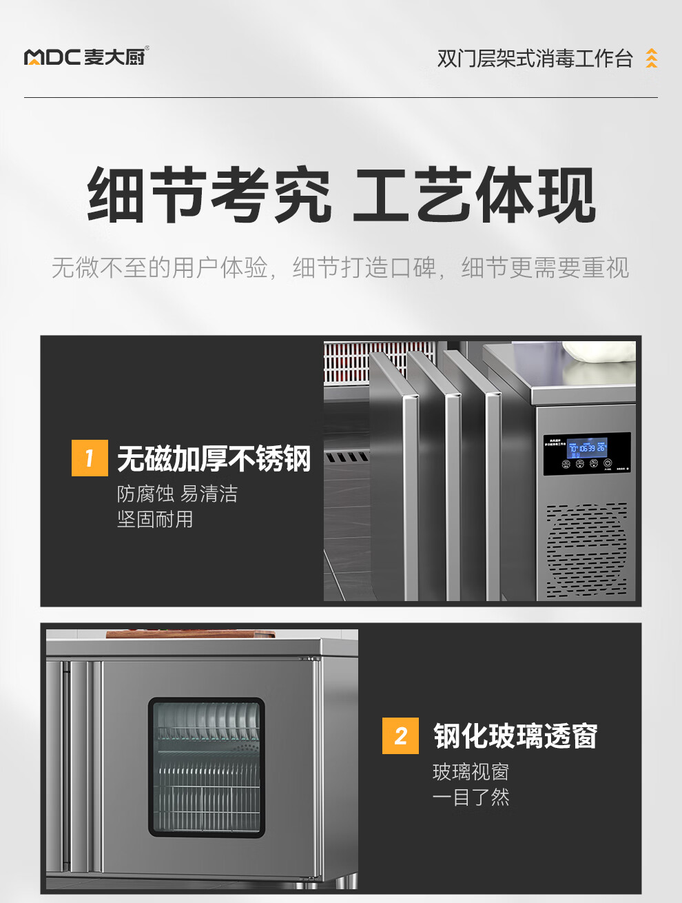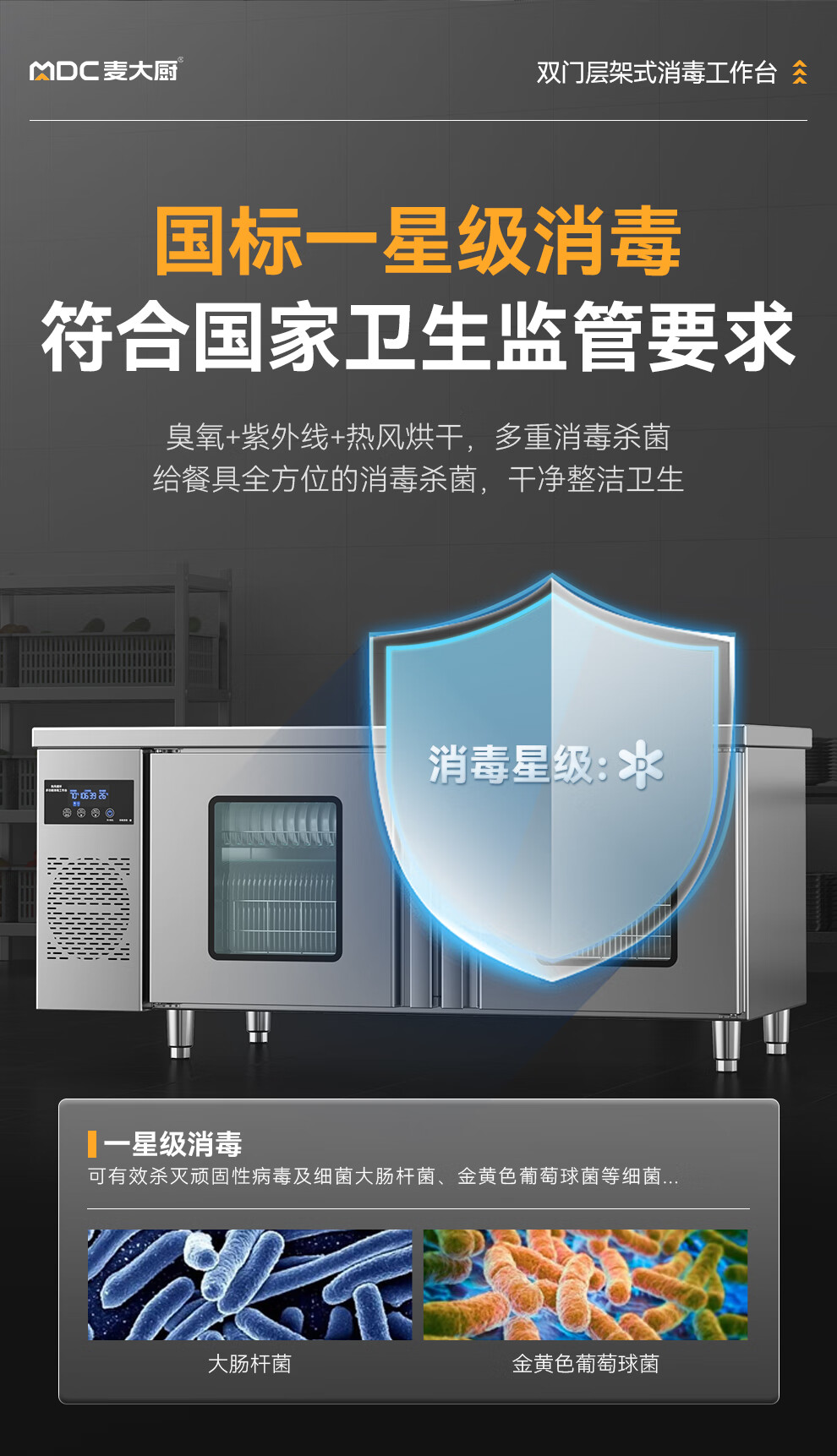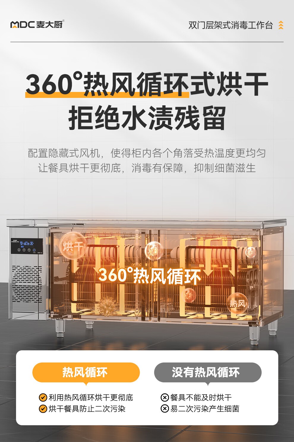 麥大廚1.8m雙門層架式臭氧紫外線熱風(fēng)循環(huán)消毒工作臺