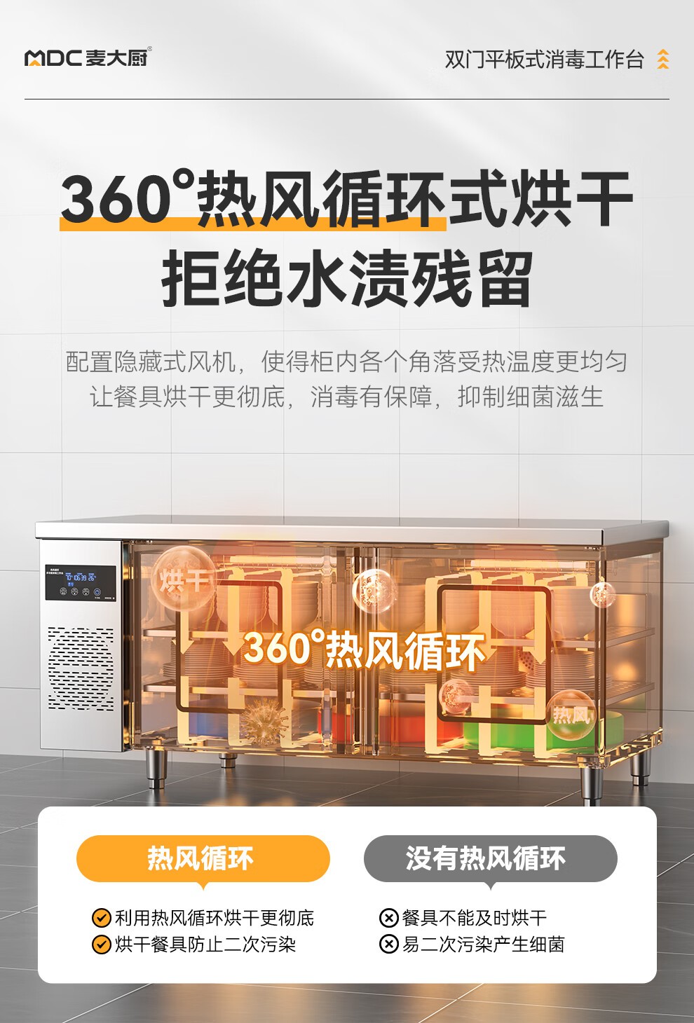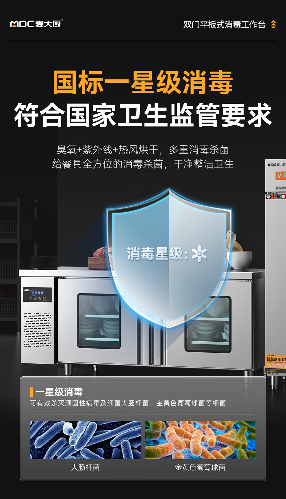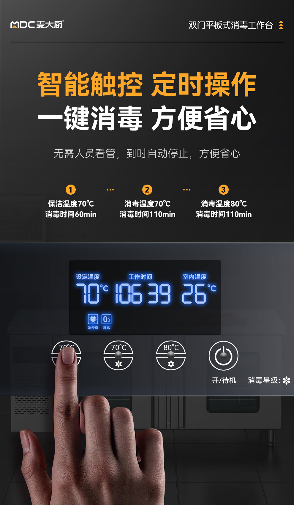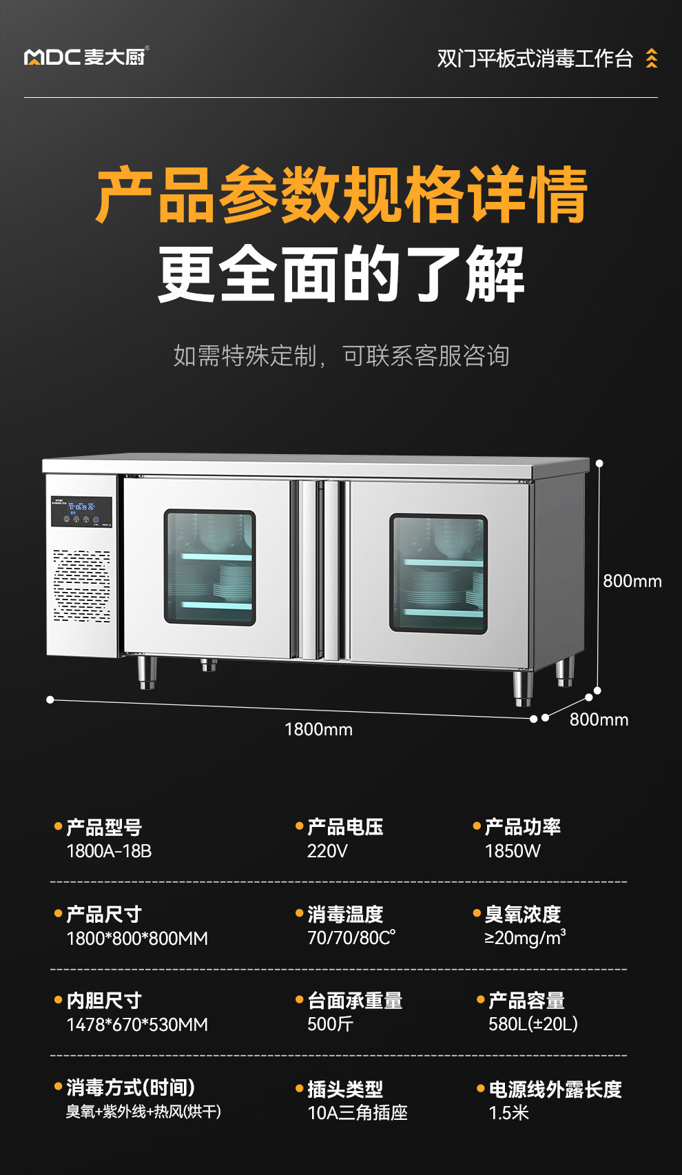 麥大廚1.8m雙門平板式臭氧紫外線熱風(fēng)循環(huán)消毒工作臺(tái)