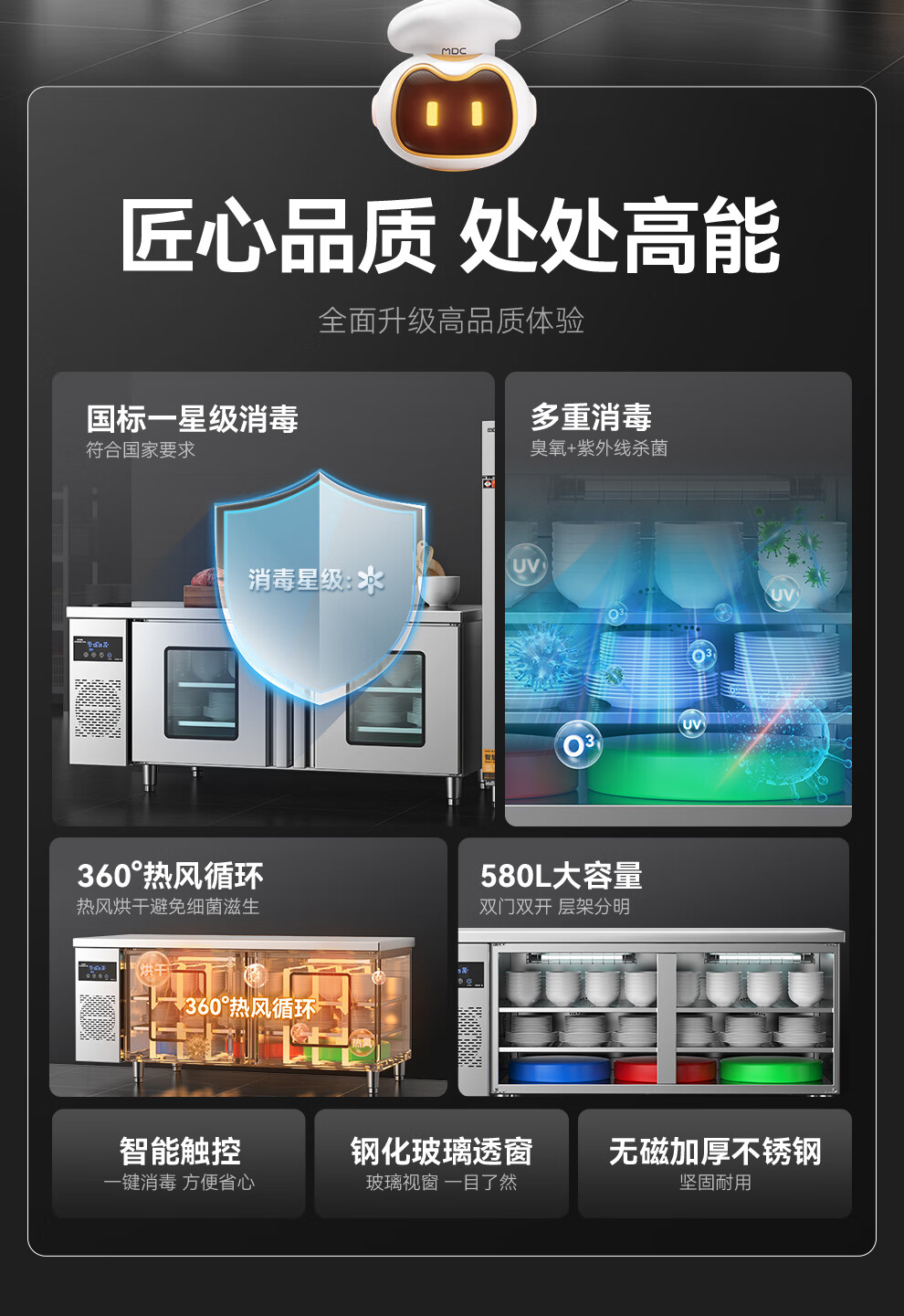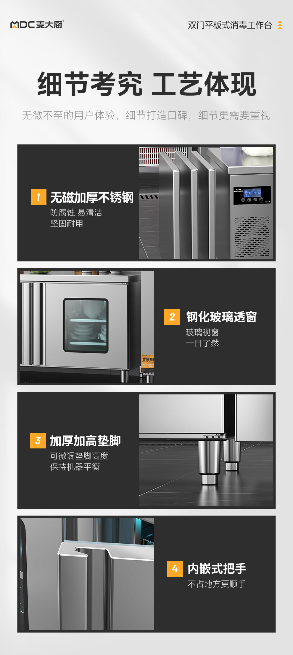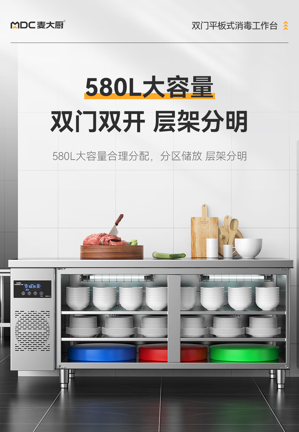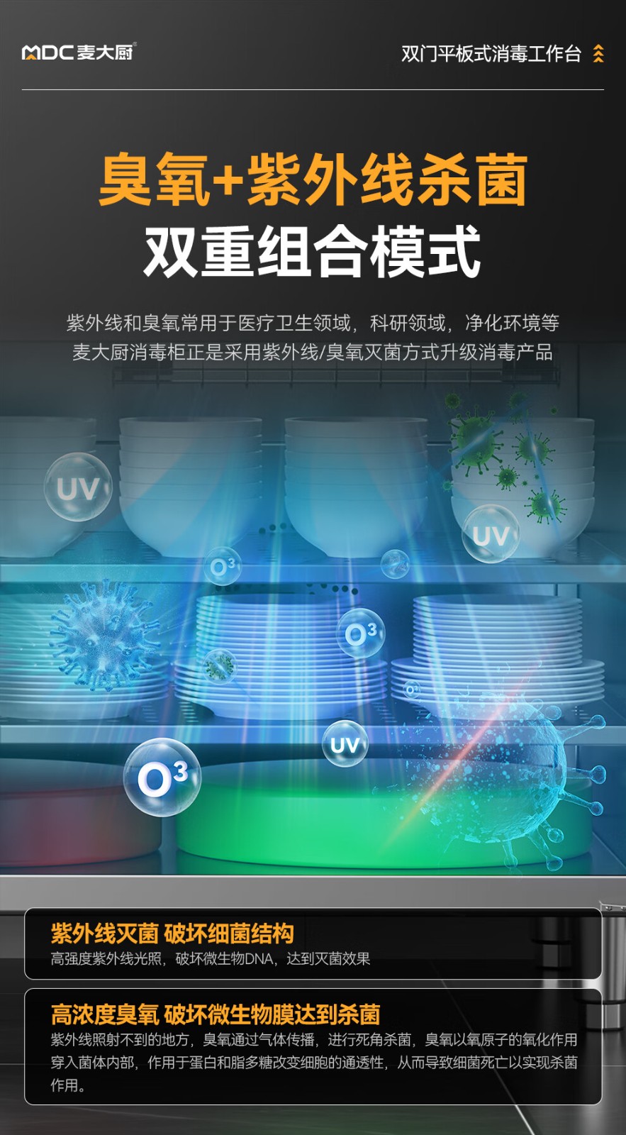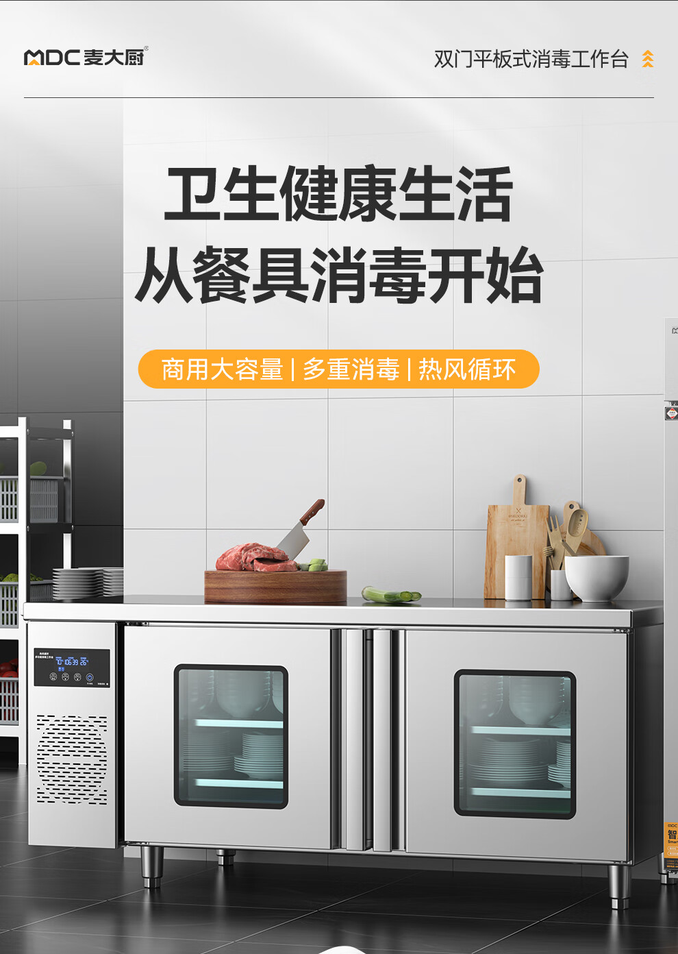 麥大廚1.8m雙門平板式臭氧紫外線熱風(fēng)循環(huán)消毒工作臺(tái)