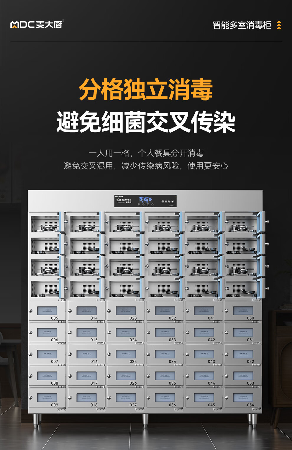 首頁 > 商廚產(chǎn)品 > 消毒柜 > 格子消毒柜 >麥大廚54室智能觸屏型熱風(fēng)循環(huán)中溫消毒柜5.5KW