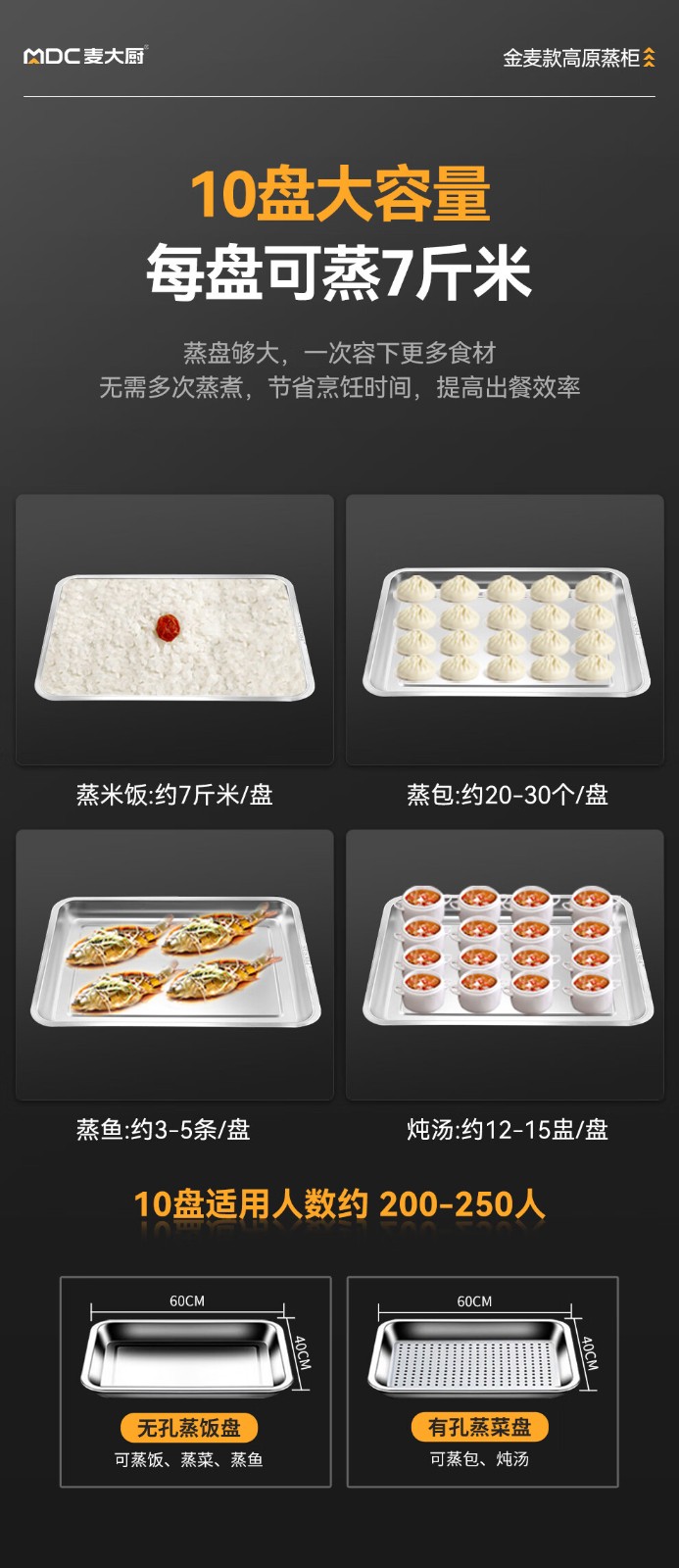 首頁 > 商廚產(chǎn)品 > 蒸飯柜 > 金麥款高原蒸柜 >麥大廚金麥款10盤電熱380V單門高原蒸柜12KW