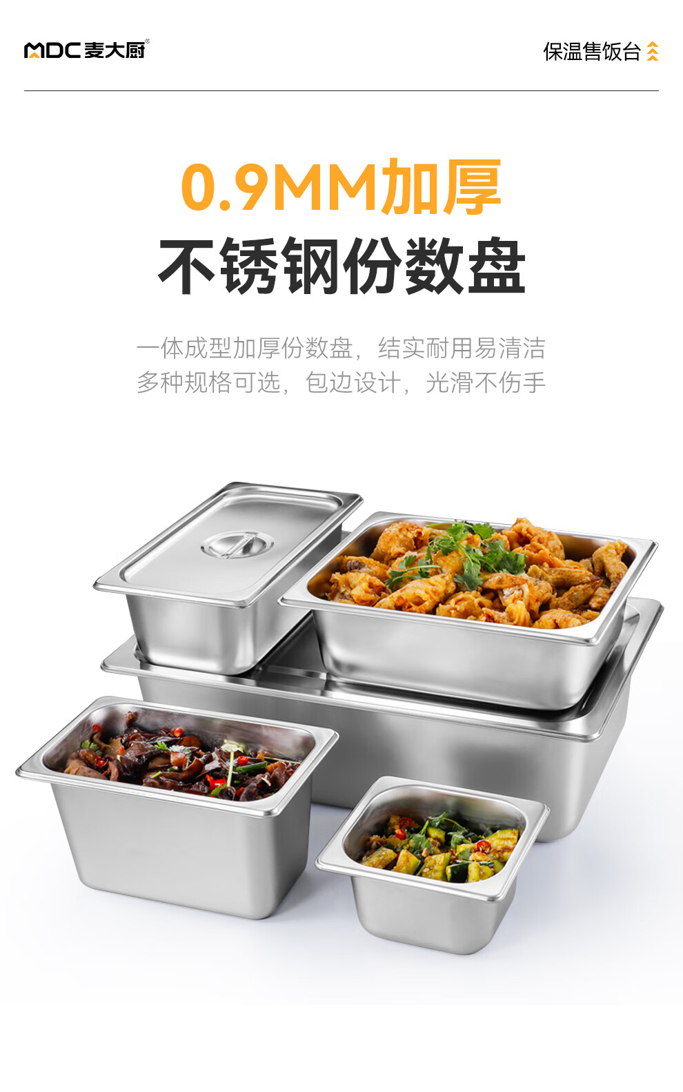 麥大廚升級(jí)款三格保溫湯池保溫售飯臺(tái)帶份數(shù)盆