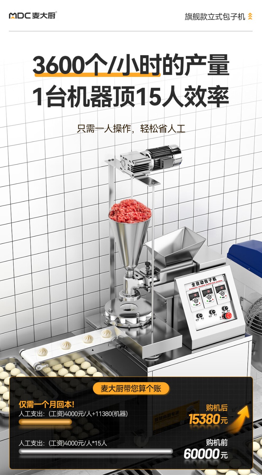 麥大廚多功能旗艦款立式單斗直供數(shù)控包子機2.75kw
