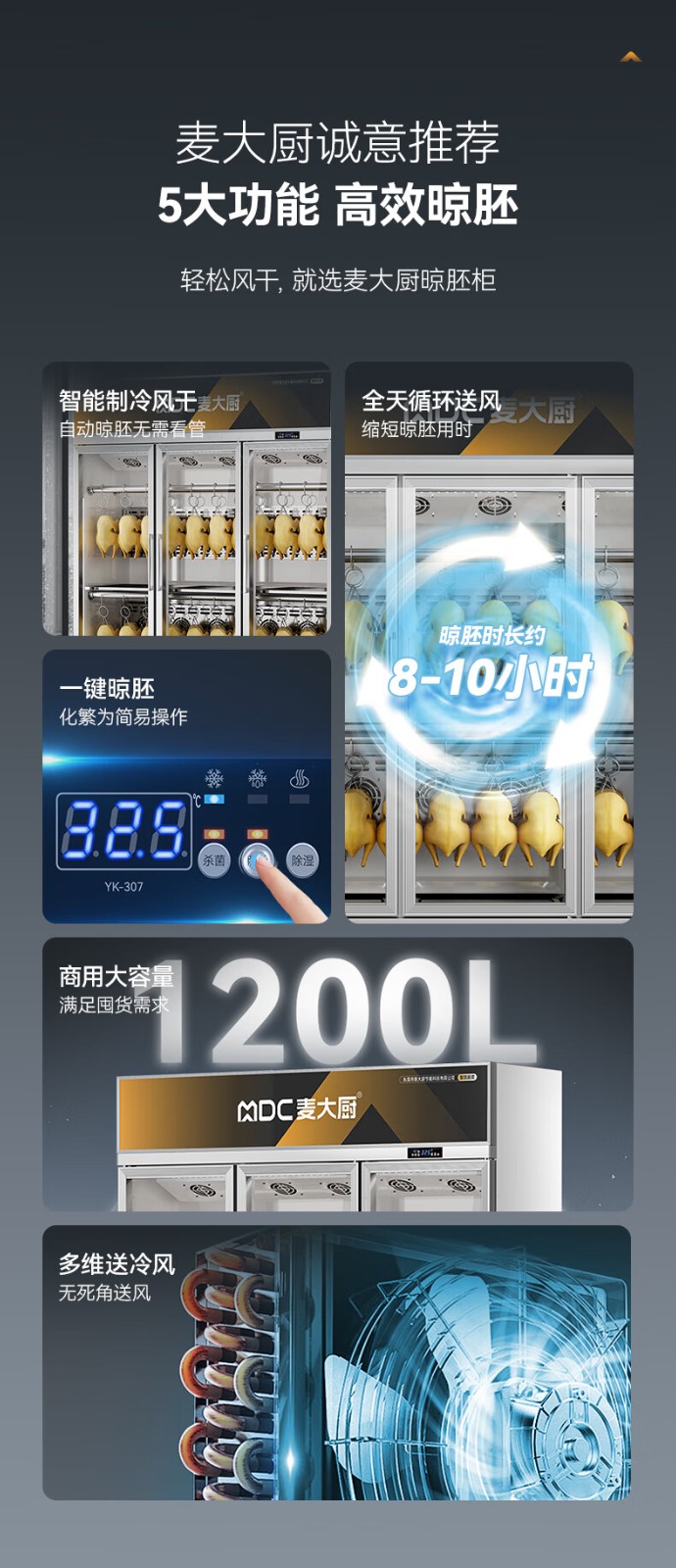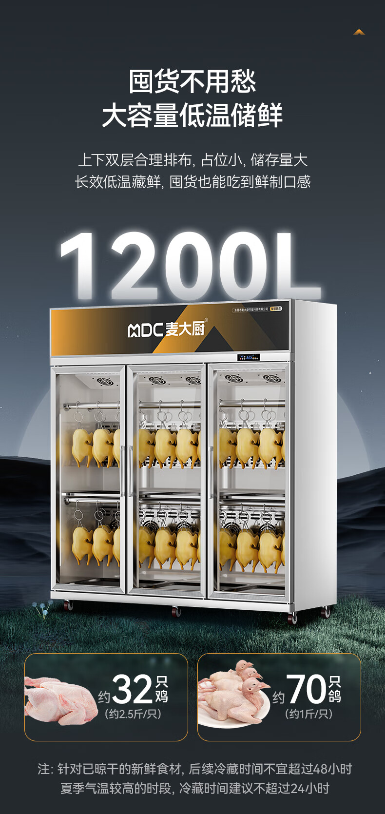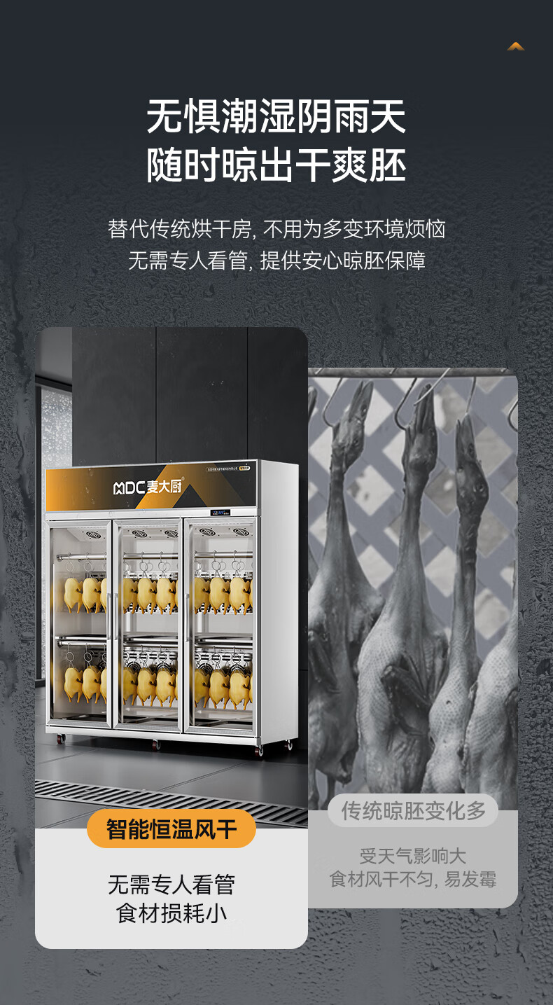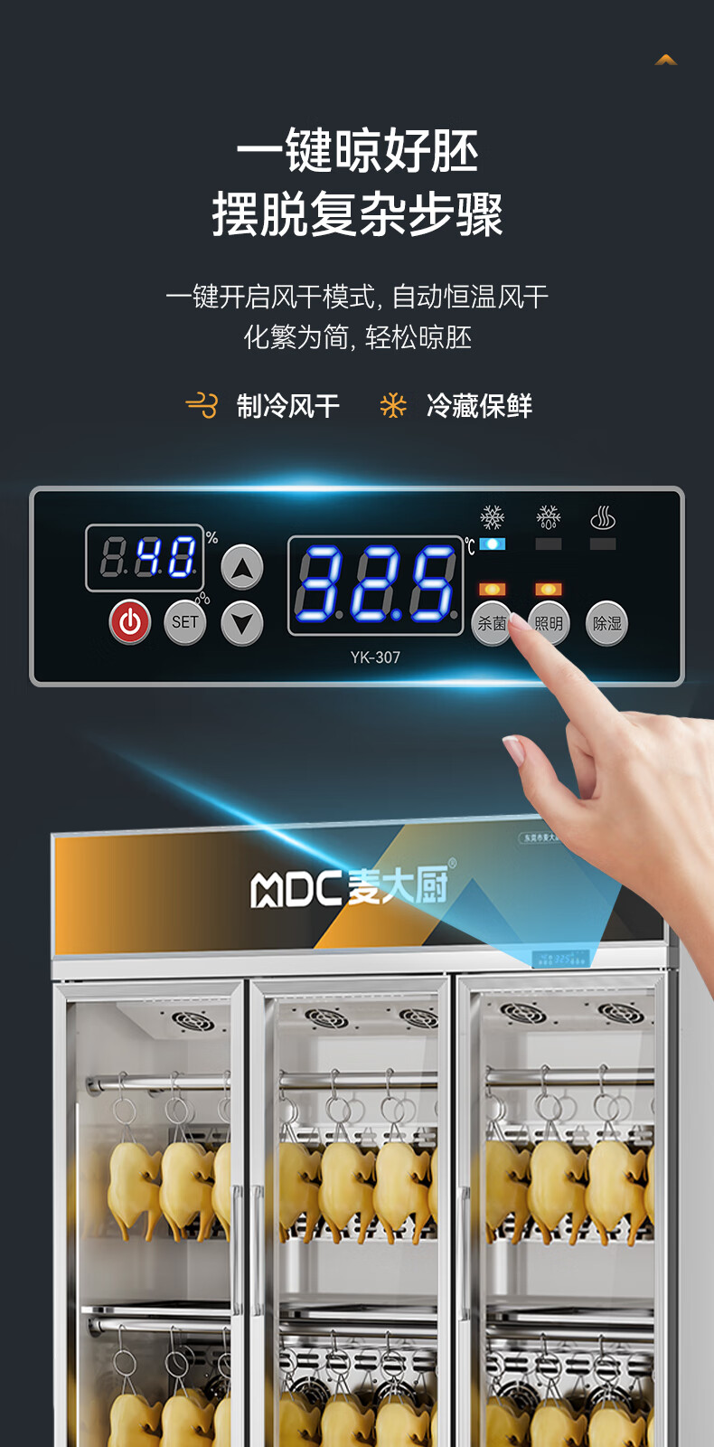 麥大廚標(biāo)準(zhǔn)款1080W三門(mén)晾胚柜商用烤鴨風(fēng)干柜