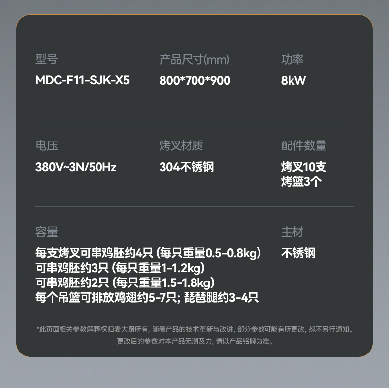 • 更多MDC商用烤雞爐規(guī)格咨詢?cè)诰€客服