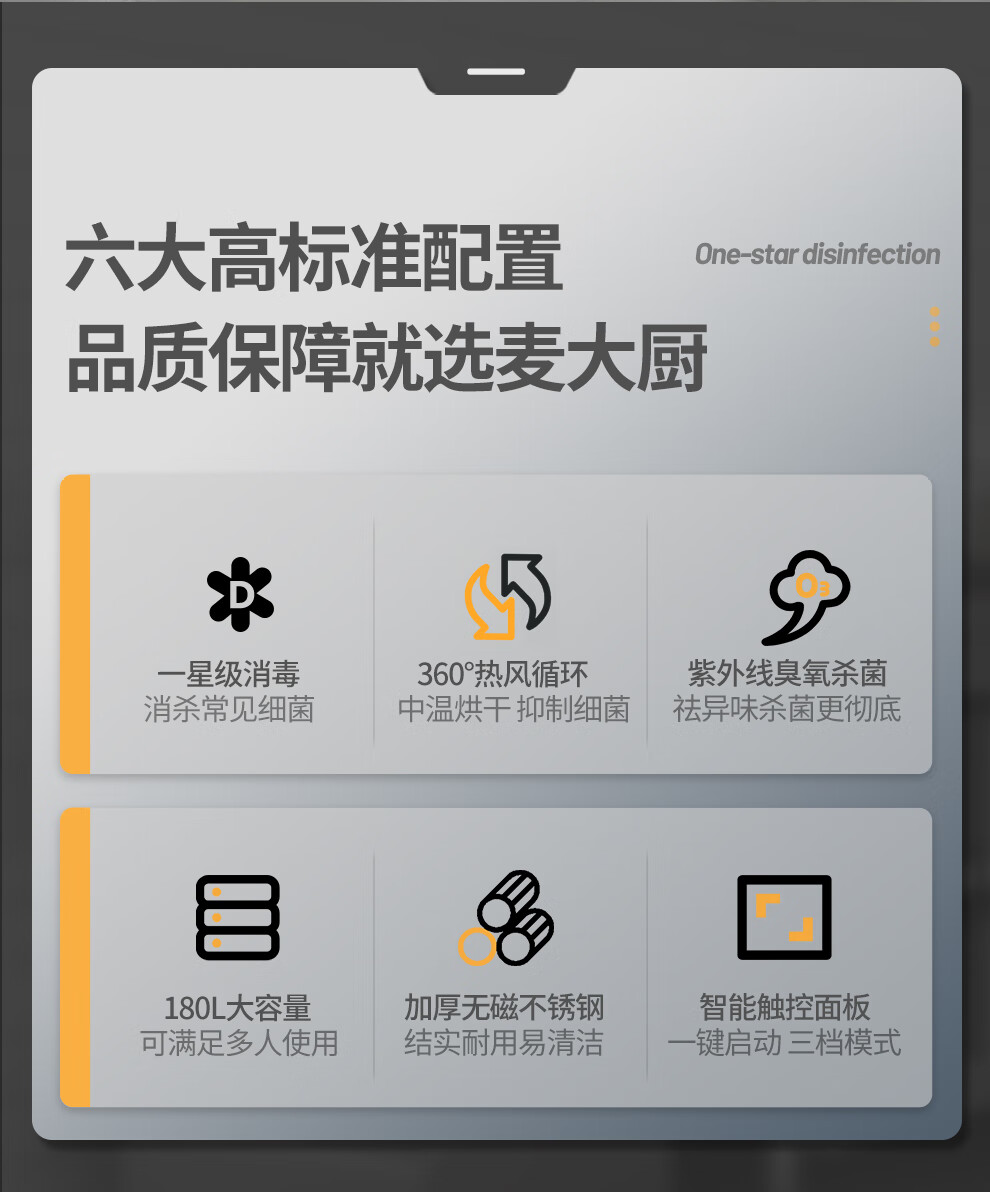 麥大廚智能型兩抽屜兩層架柜式中溫茶水消毒柜