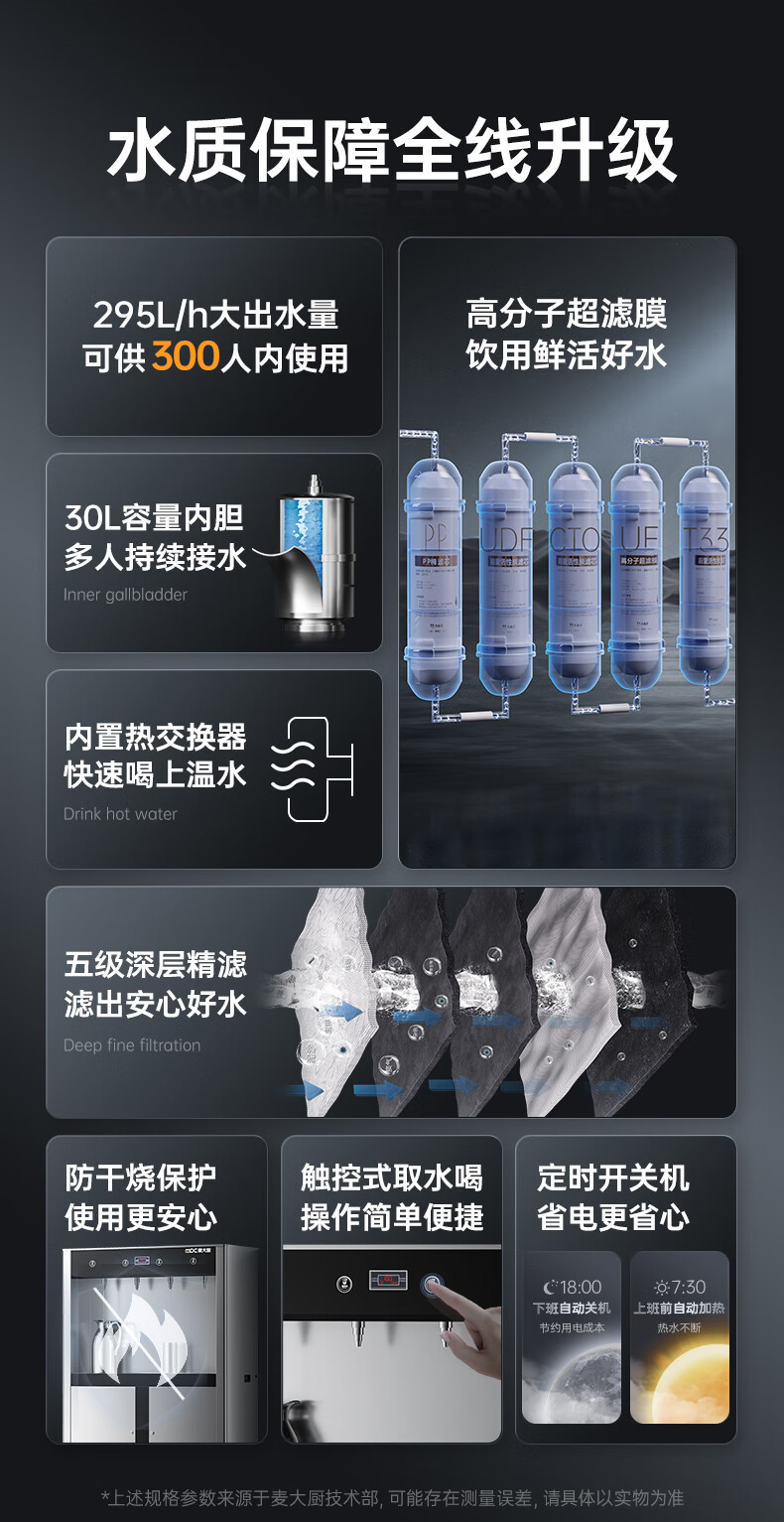 麥大廚4.5KW柜式觸控飲水機一開三溫快接五級超濾直飲機