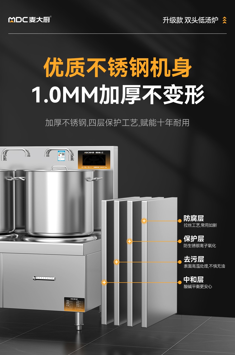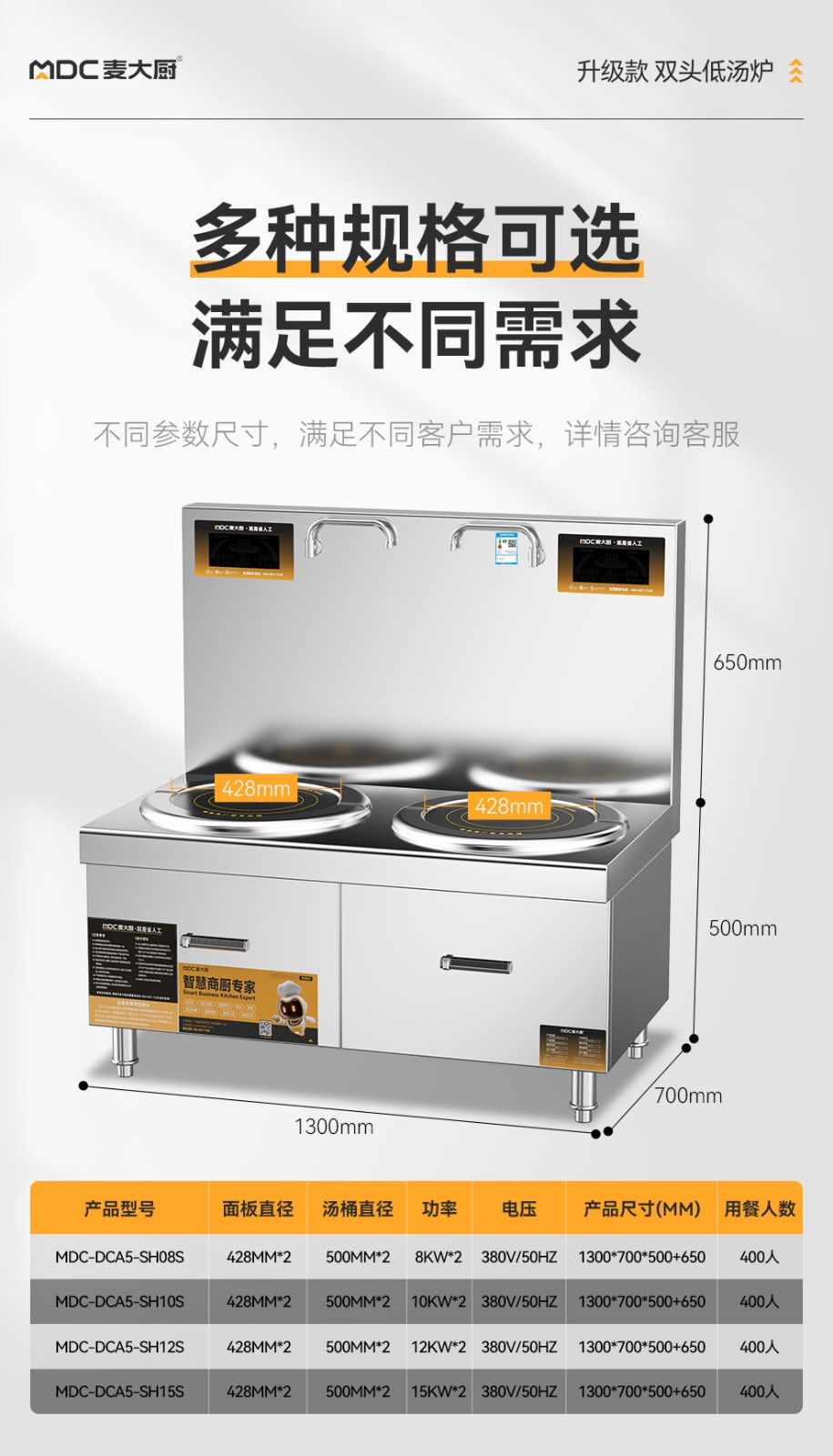 首頁 > 商廚產(chǎn)品 > 電磁灶 > 雙頭低湯爐 > 麥大廚商用升級款雙頭低湯爐矮仔爐15KW