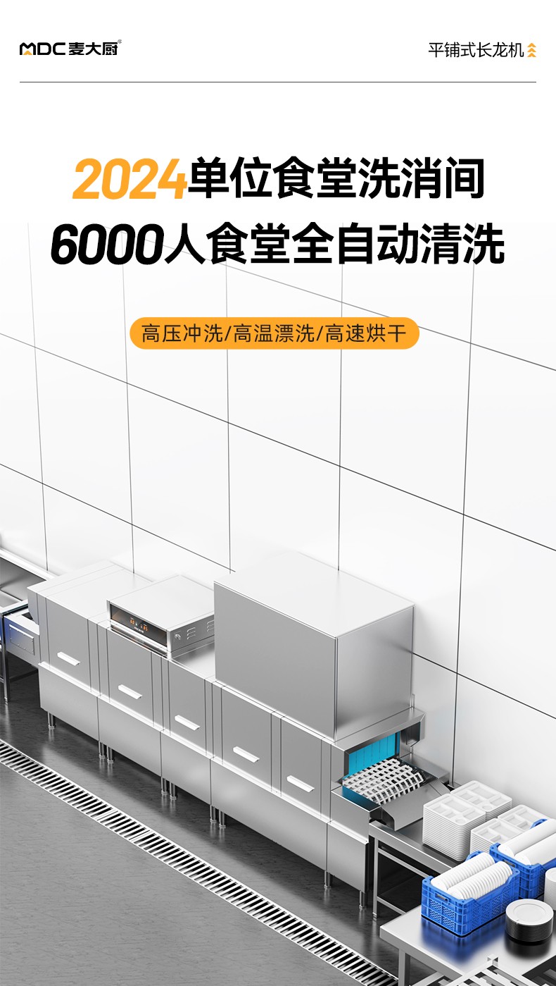 麥大廚4.4m豪華款平放式雙缸雙噴淋單烘干酒店餐廳洗碗機
