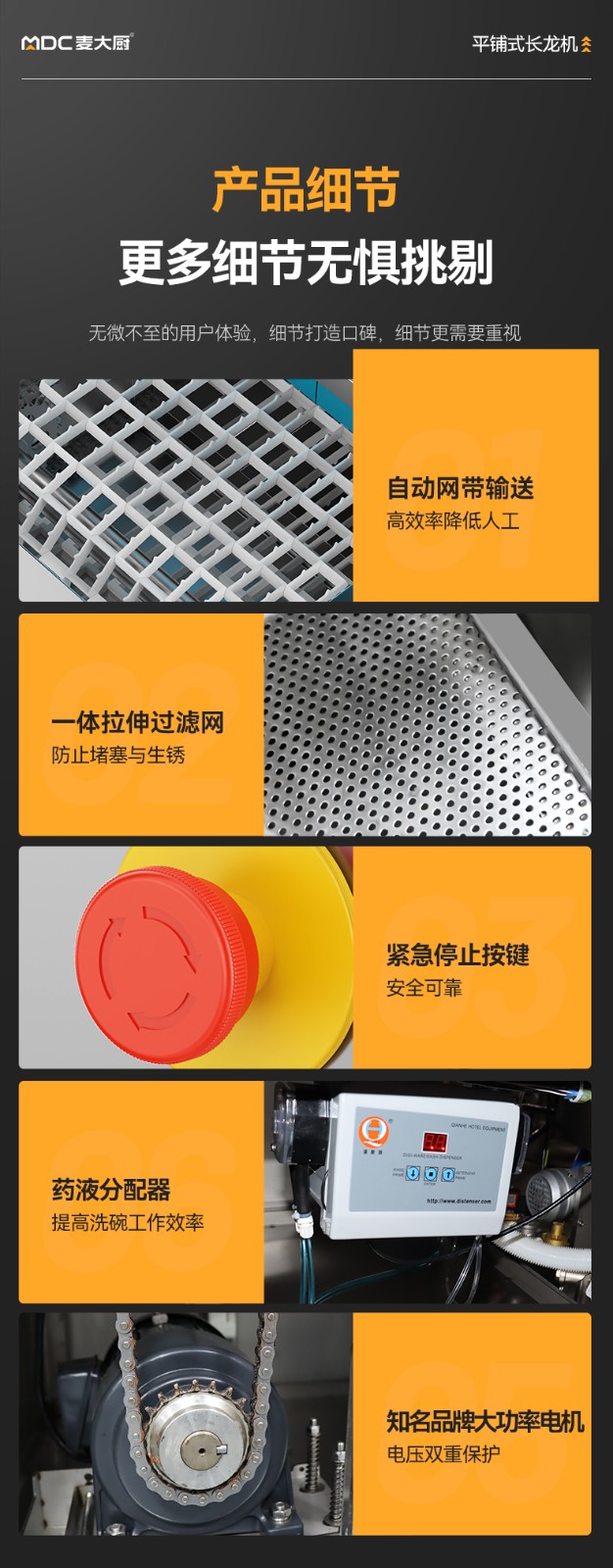 麥大廚4.9m豪華款平放式單缸雙噴淋雙烘干商用大型洗碗機