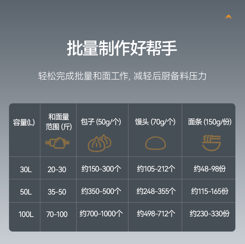 單次和面量:30-50斤