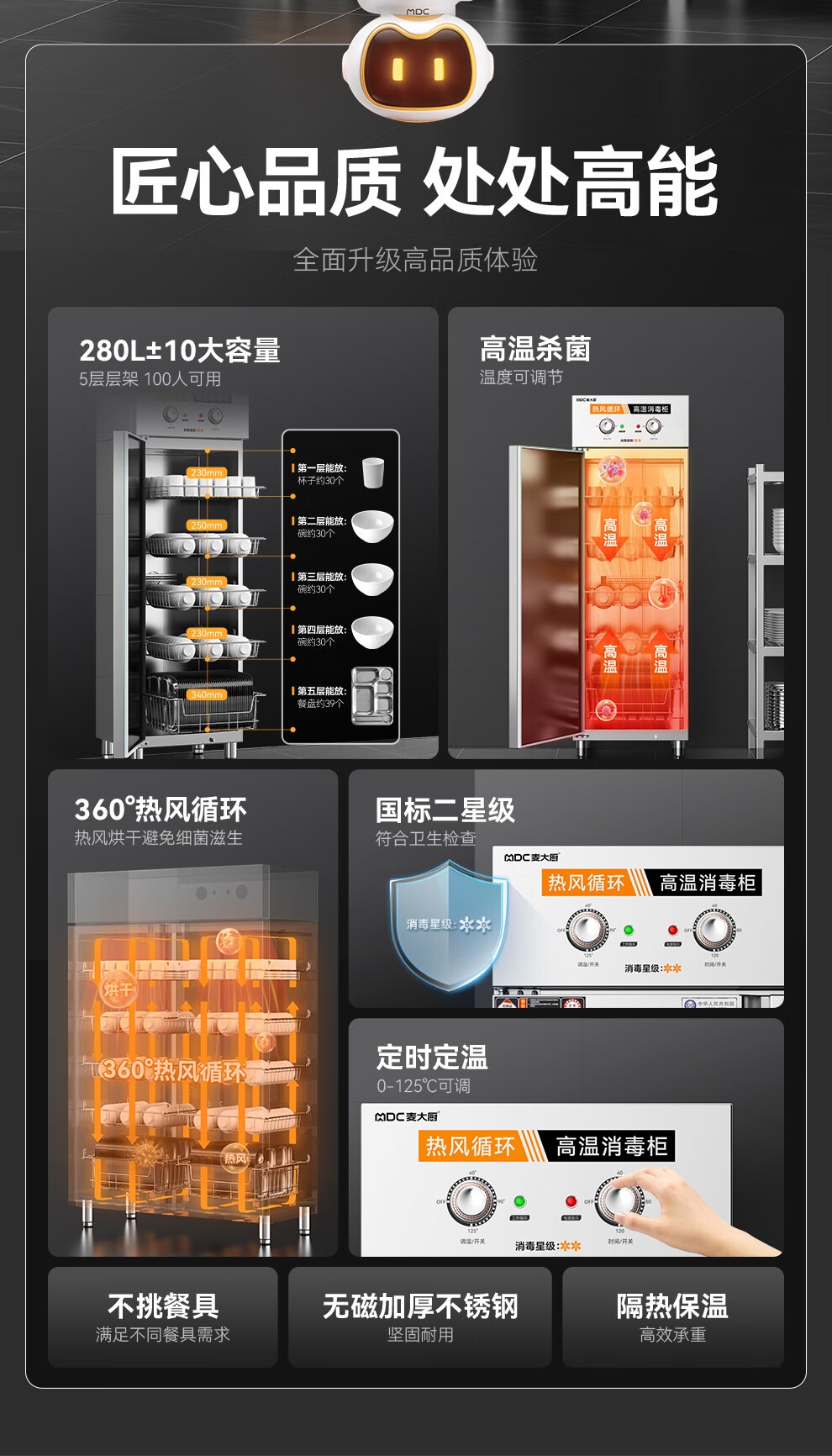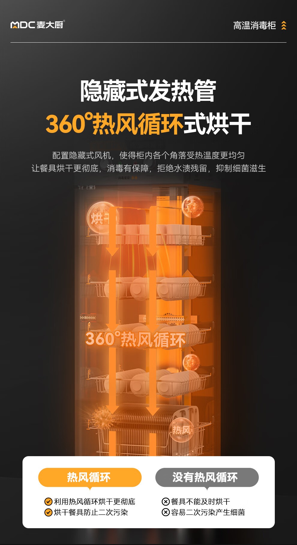麥大廚經(jīng)典旋鈕款5層單門單控?zé)犸L(fēng)循環(huán)高溫消毒柜920W