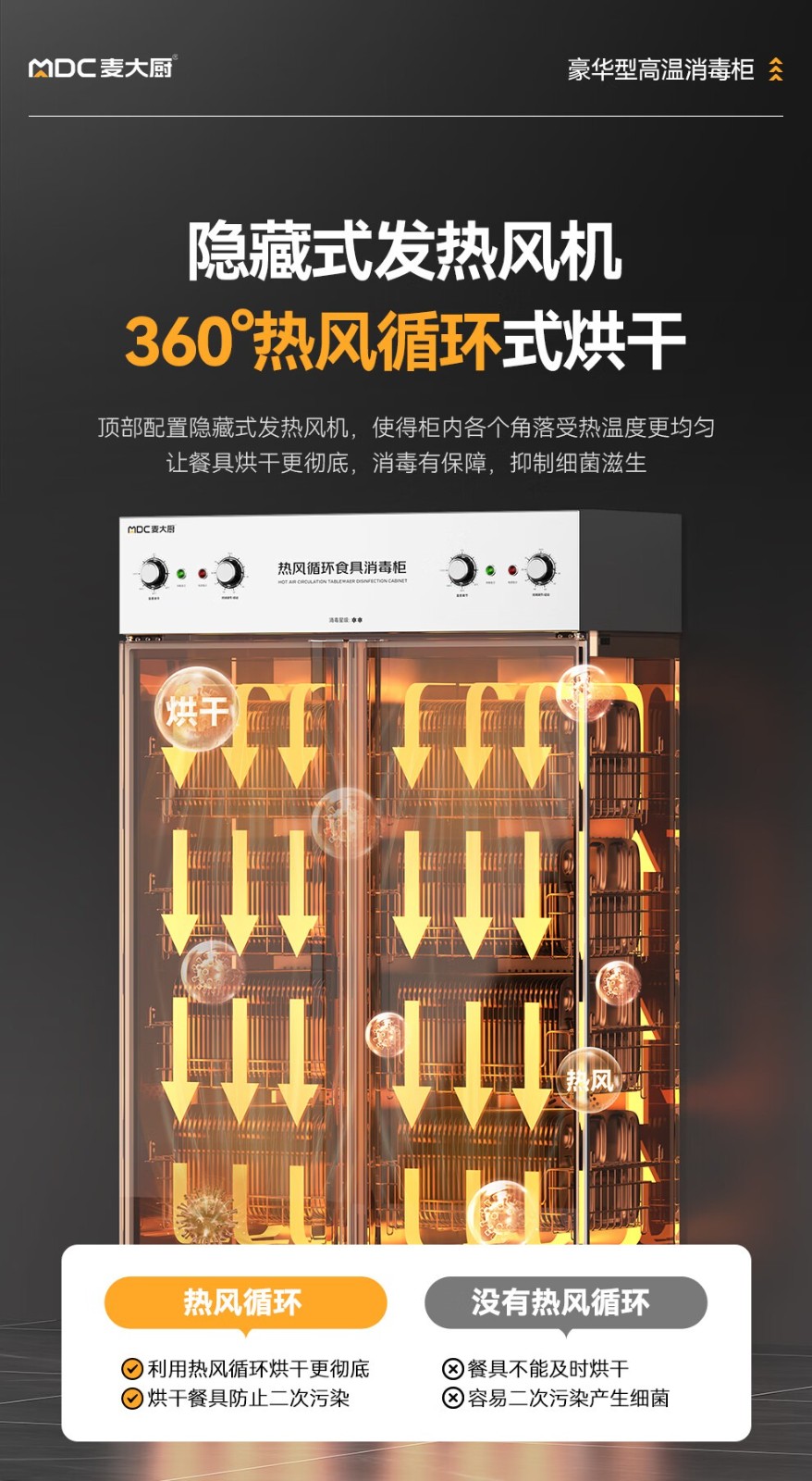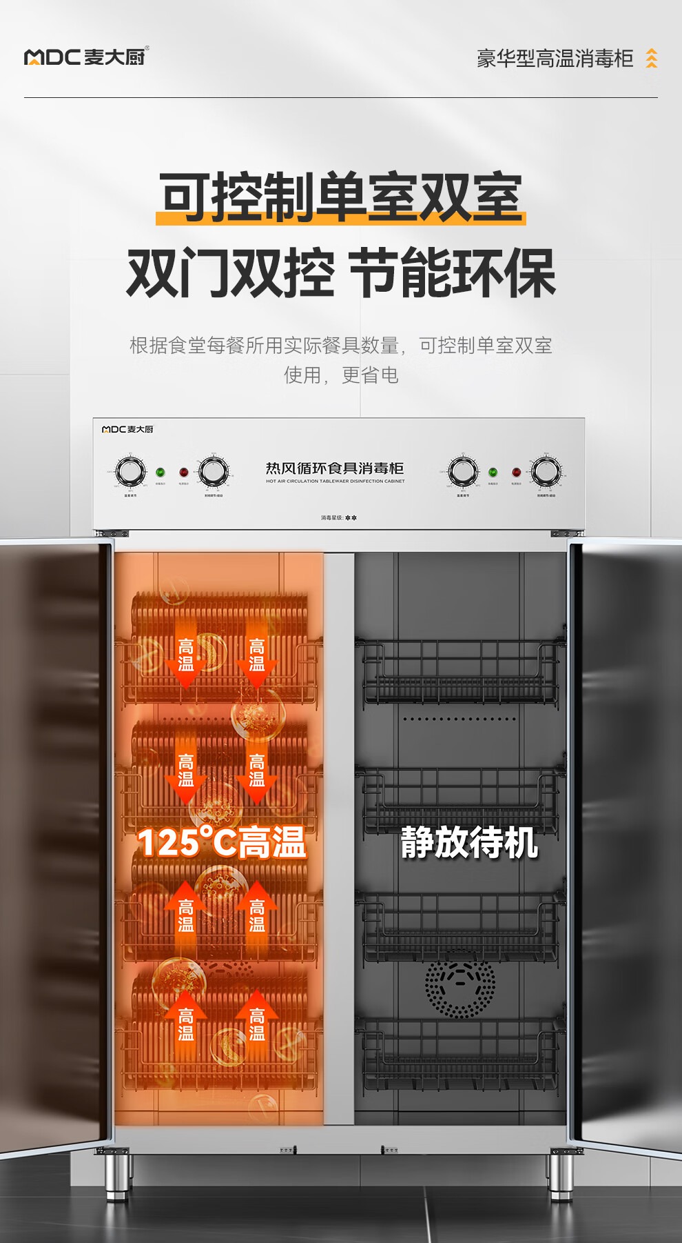 麥大廚豪華旋鈕型雙門雙控4層熱風(fēng)循環(huán)高溫消毒柜1870W