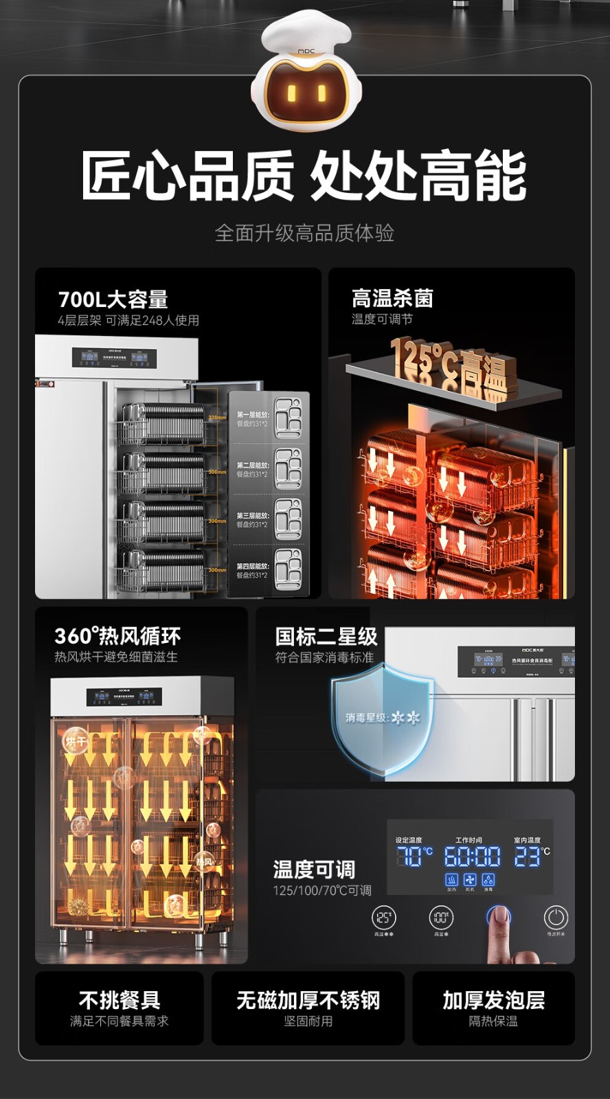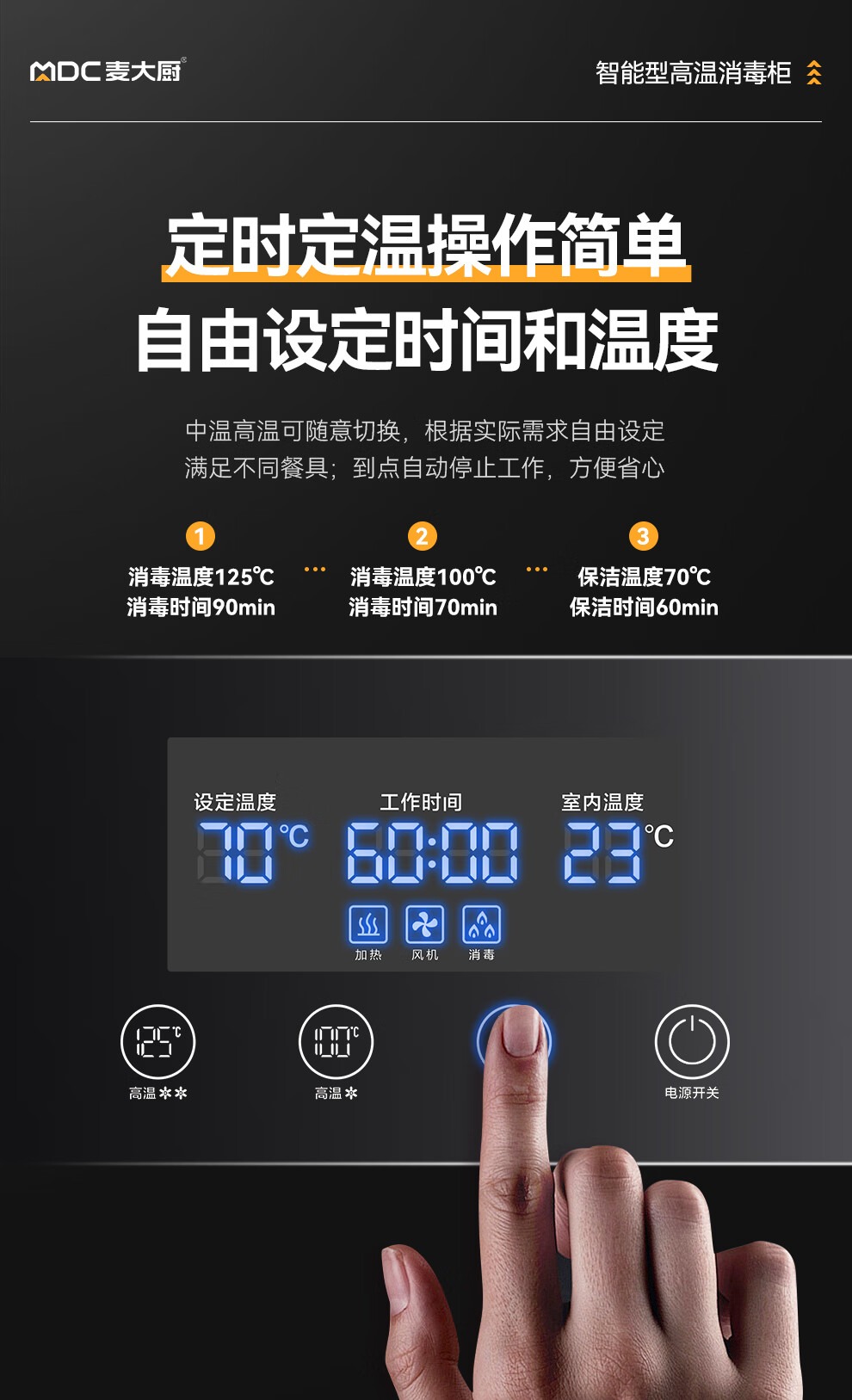 麥大廚智能電腦型雙門雙控4層熱風(fēng)循環(huán)高溫消毒柜1870W