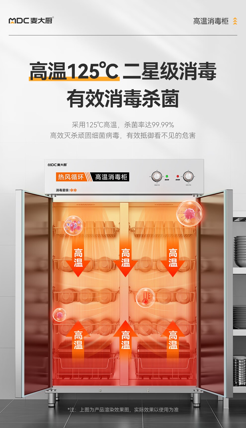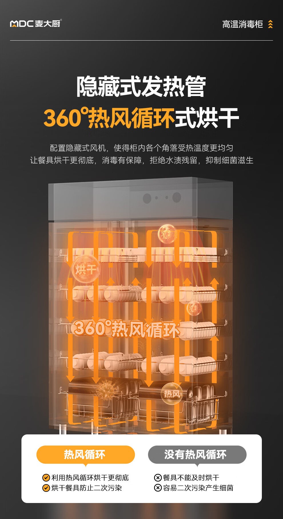 麥大廚經(jīng)典旋鈕款雙門單控5層熱風(fēng)循環(huán)高溫消毒柜1550W